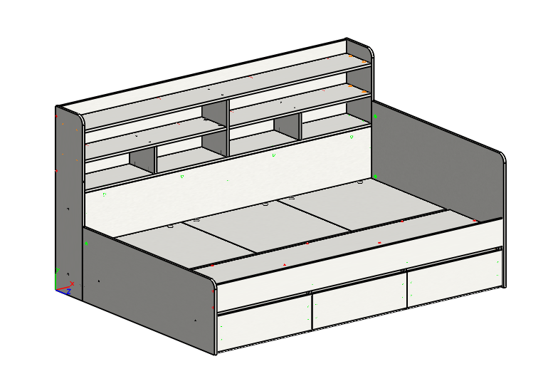 Кровать имеет 3 выдвижных ящика на шариковых направляющих, а также удобные внутренние отделения для хранения вещей.