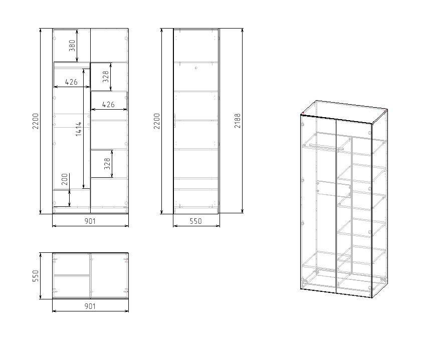 Двухстворчатый распашной шкаф коллекции мебели Брайт - удобный и функциональный шкаф для хранения вещей.