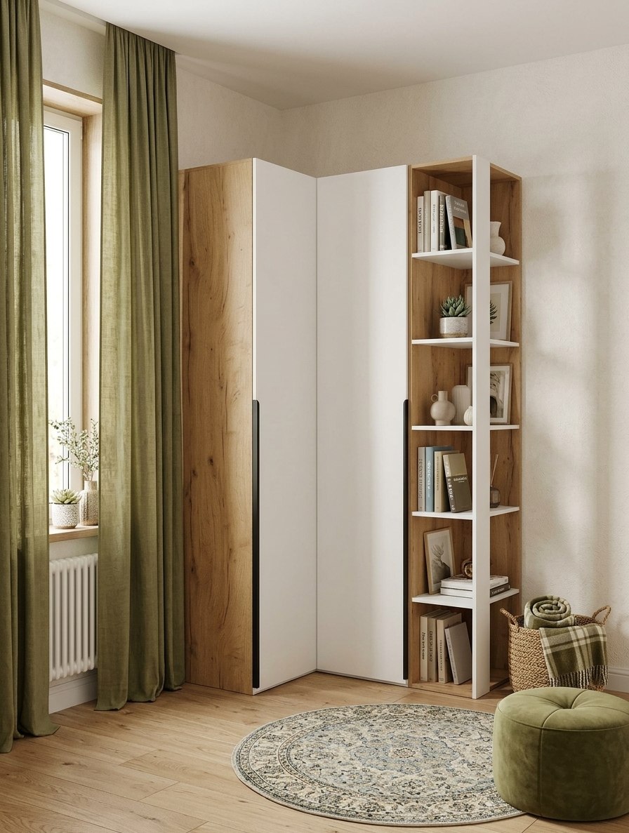 Стеллаж служит прекрасным торцевым завершением для шкафа или пенала.