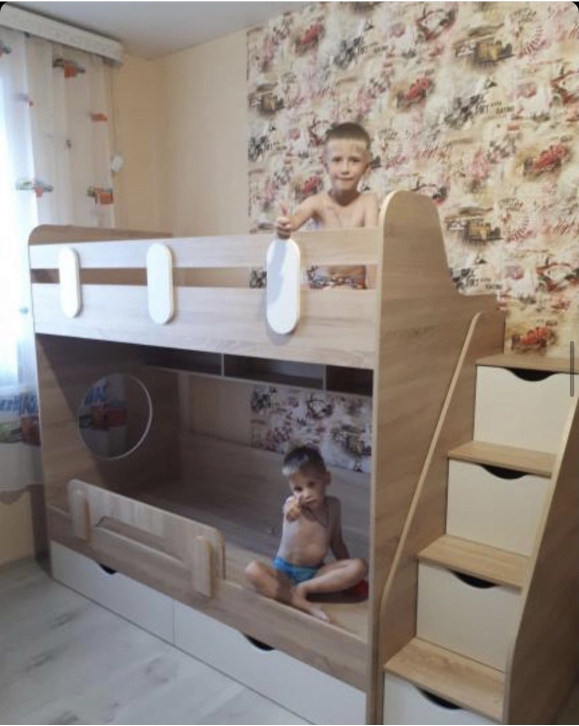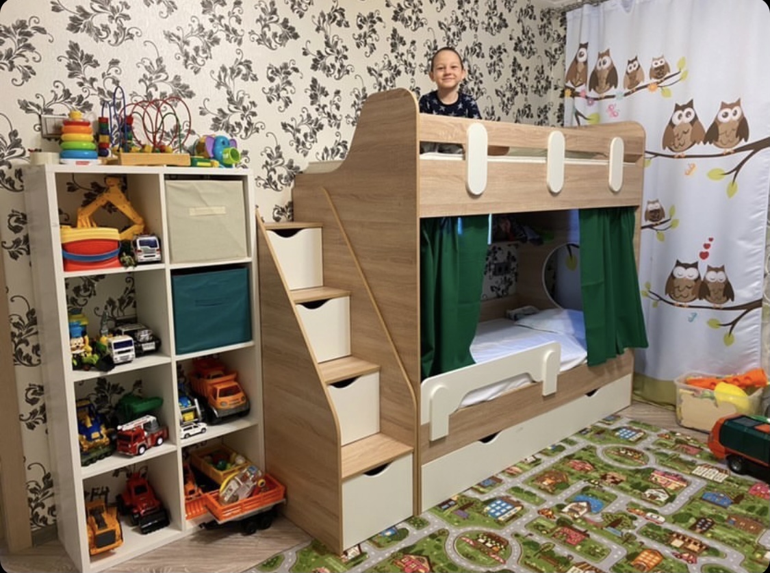 Высокая нагрузка на спальные места. Прочный ящики. Высокий, безопасный бортик |