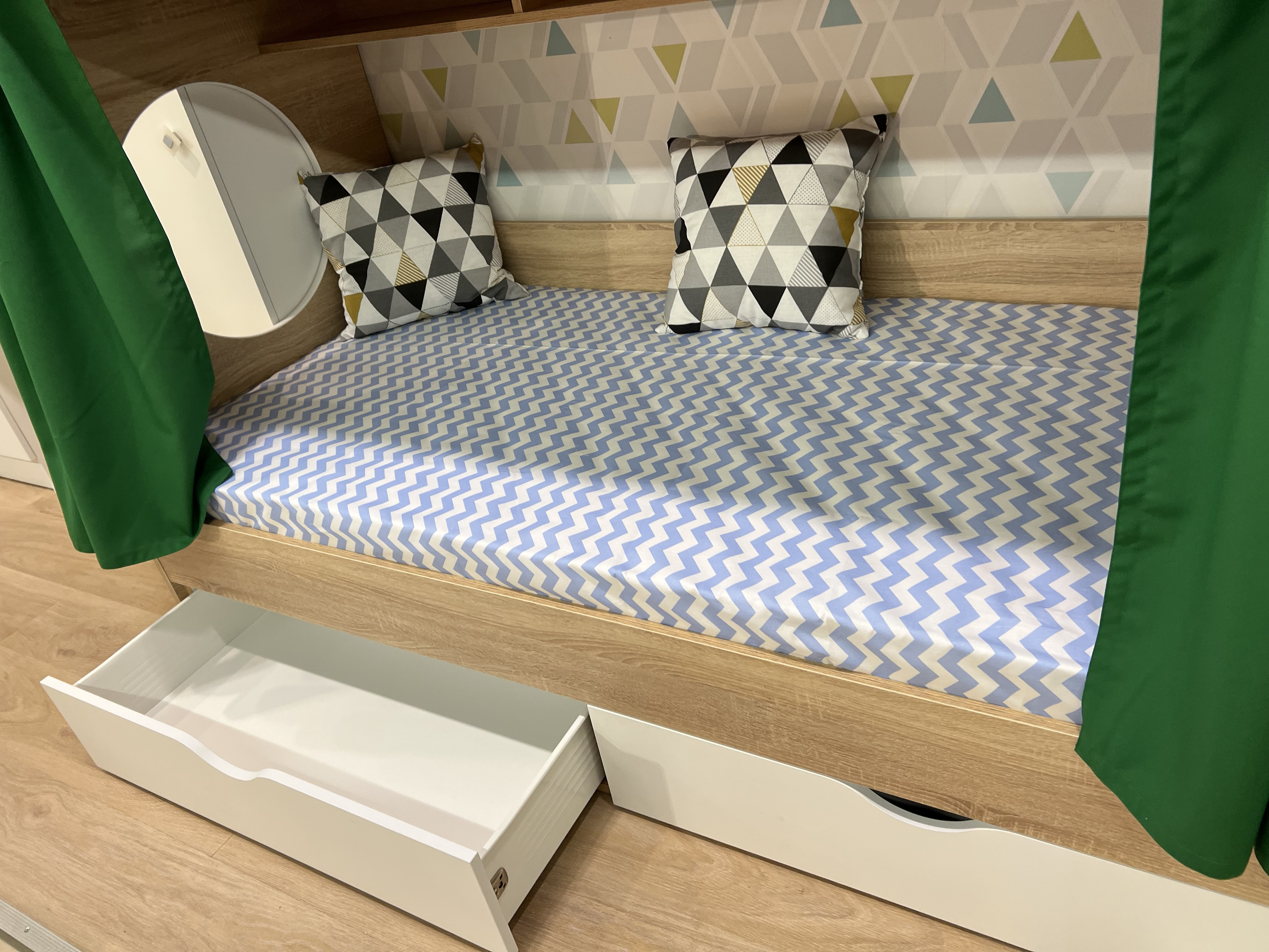 * Выдвижные ящики в нижней кровати изготовлены с применением метабоксов, что делает изделие практичным и надежным.