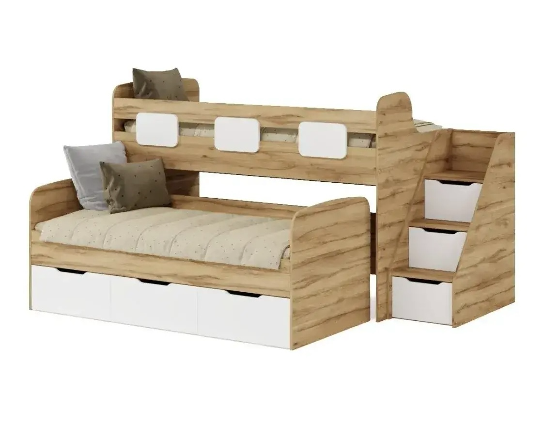 Вместо них - цельный и прочный настил из ЛДСП, который выдерживает сверхвысокую нагрузку и позволяет расположиться даже взрослому с ребенком.