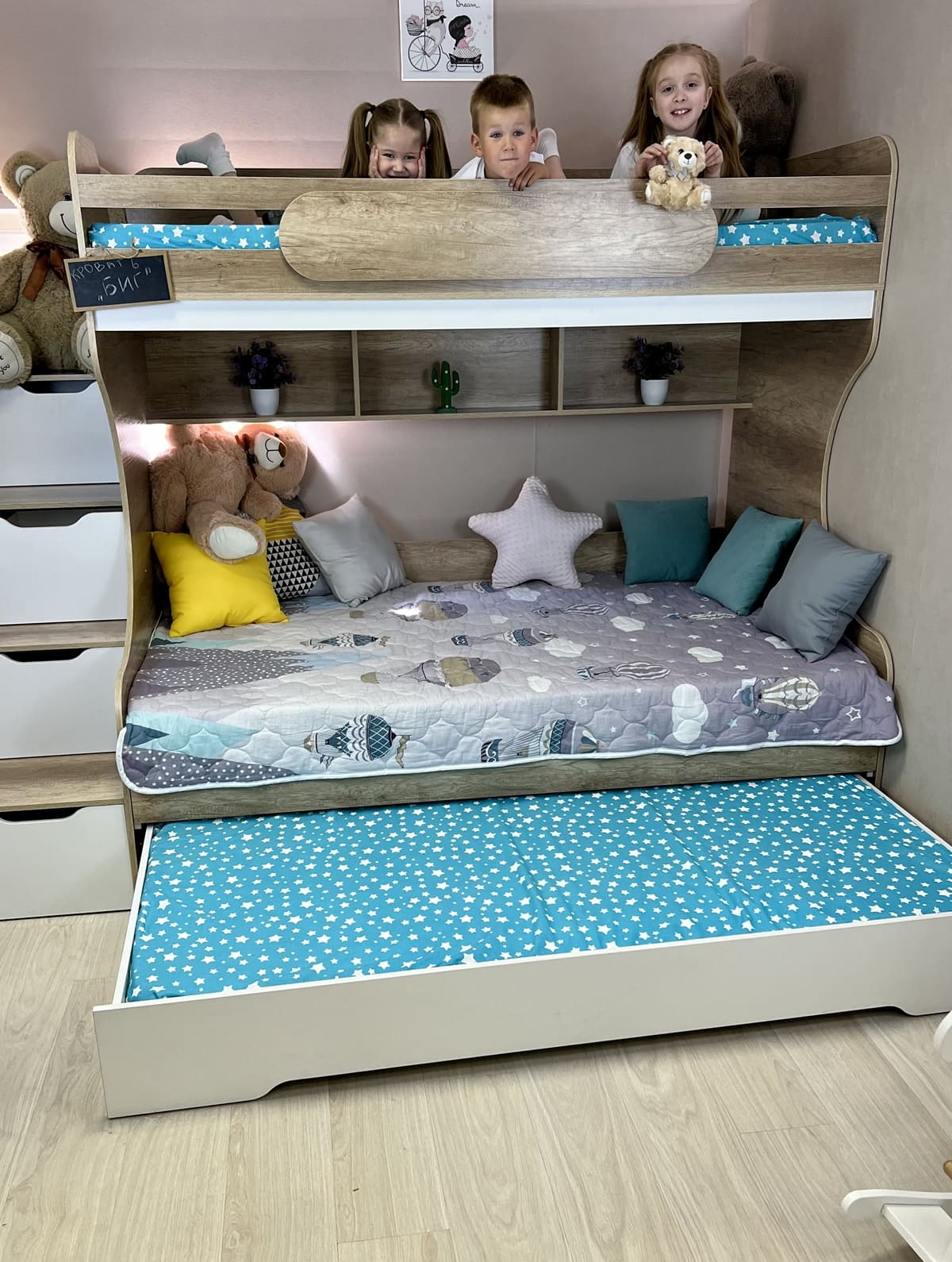 Увеличенное, просторное нижнее спальное место позволяет комфортно разместиться ребенку вместе со взрослым.