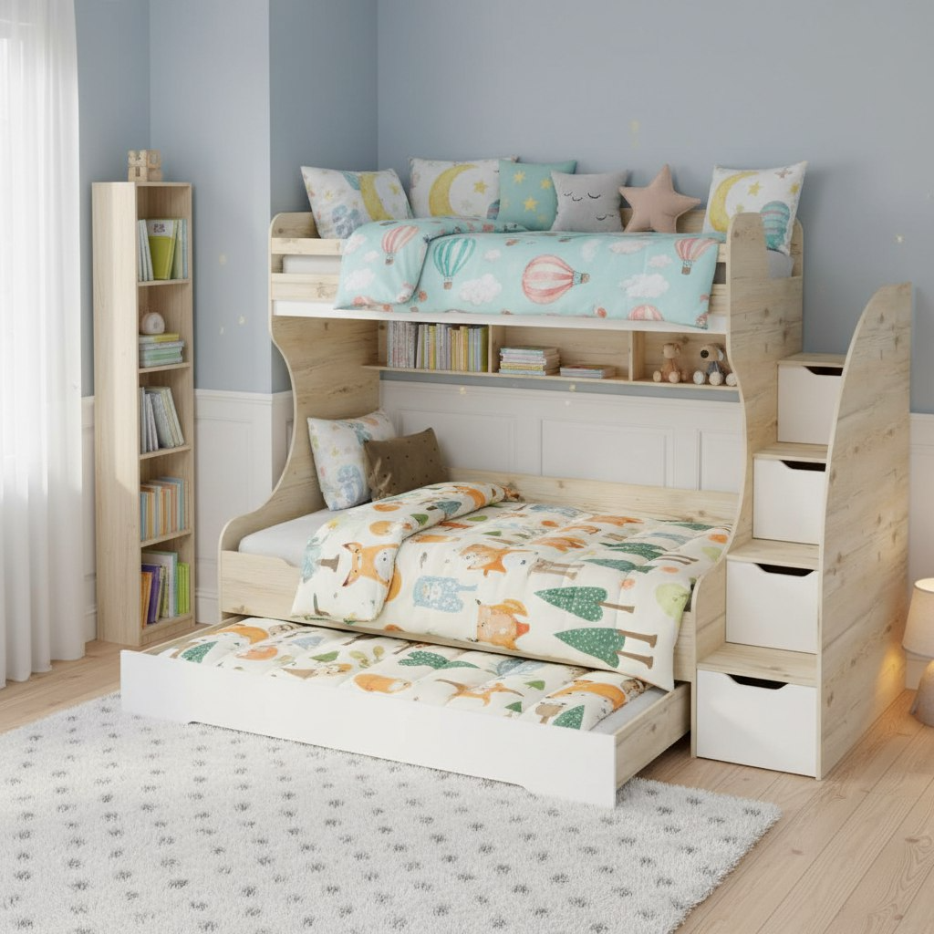 Вместо них - цельный и прочный настил из ЛДСП, который выдерживает сверхвысокую нагрузку и позволяет расположиться даже взрослому с ребенком.