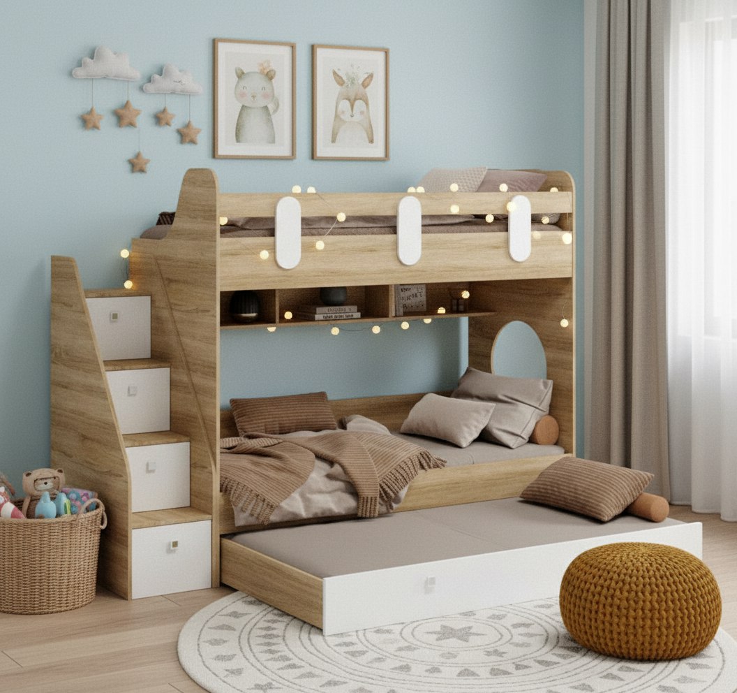 Вместо них - цельный и прочный настил из ЛДСП, который выдерживает сверхвысокую нагрузку и позволяет расположиться даже взрослому с ребенком.