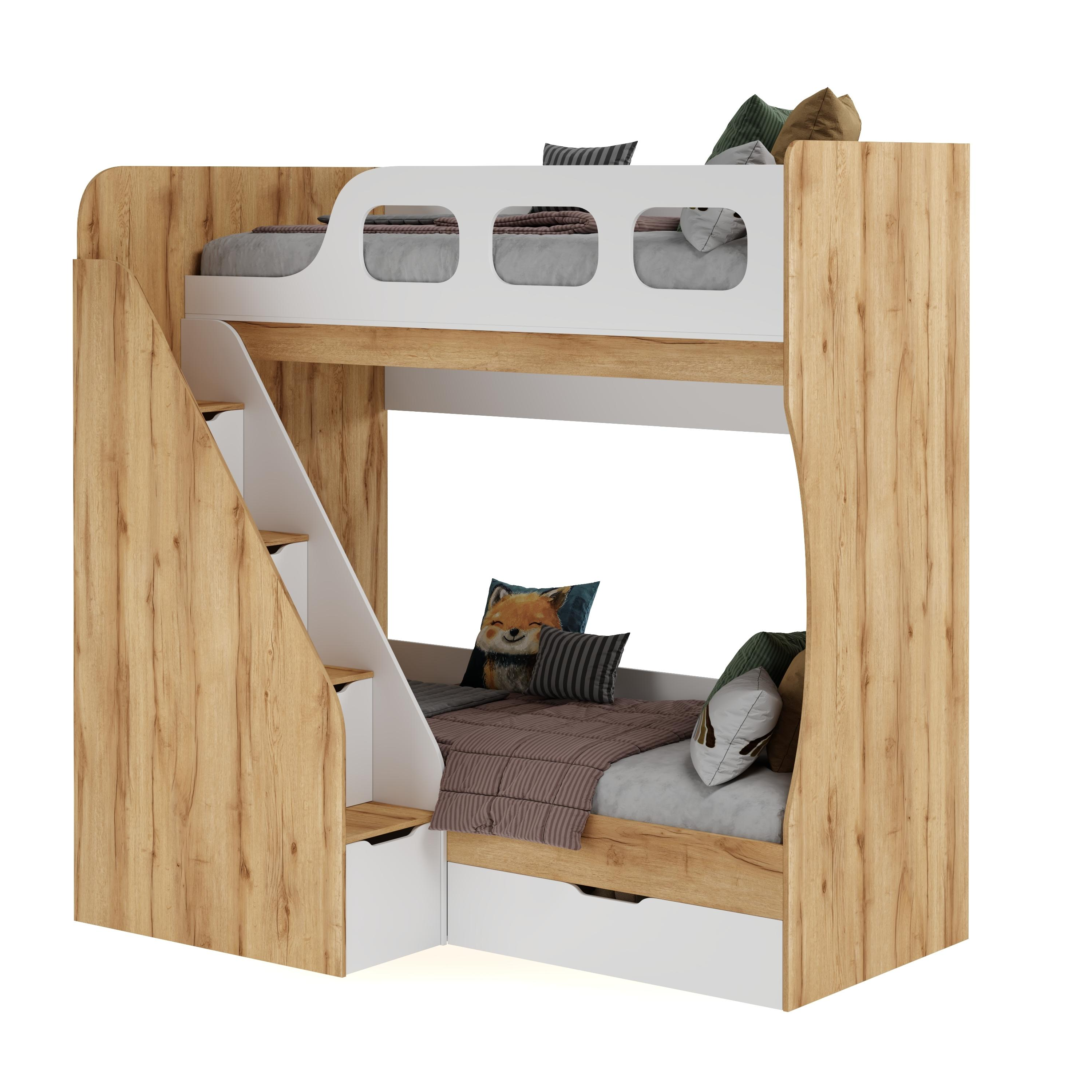 * В нижнюю кровать встроен выдвижной ящик для белья и игрушек.