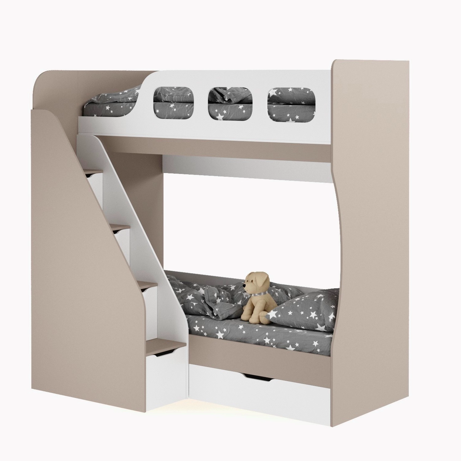 * В нижнюю кровать встроен выдвижной ящик для белья и игрушек.