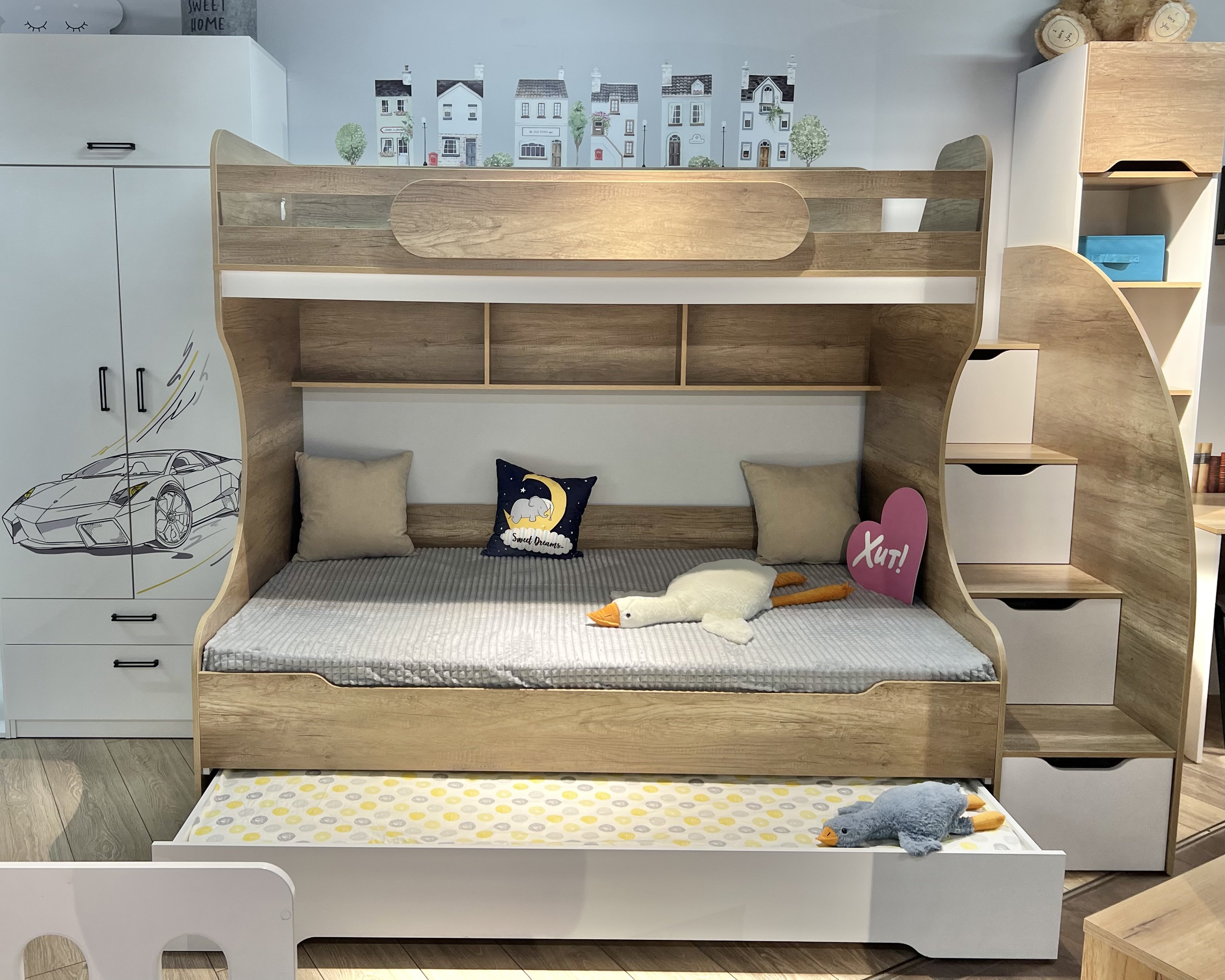 Увеличенное нижнее спальное место позволяет комфортно разместиться ребенку вместе со взрослым.