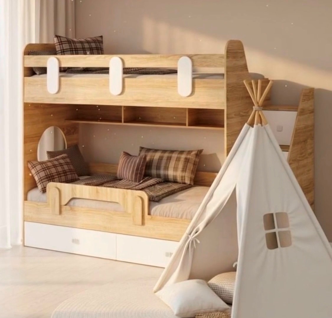 Вместо них - цельный и прочный настил из ЛДСП, который выдерживает сверхвысокую нагрузку и позволяет расположиться даже взрослому с ребенком.