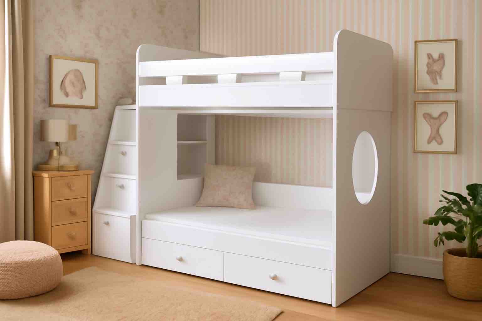 Двухъярусная кровать Фортуна-2 с удобной лестницей, высоким, безопасным бортиком и комфортной высотой.