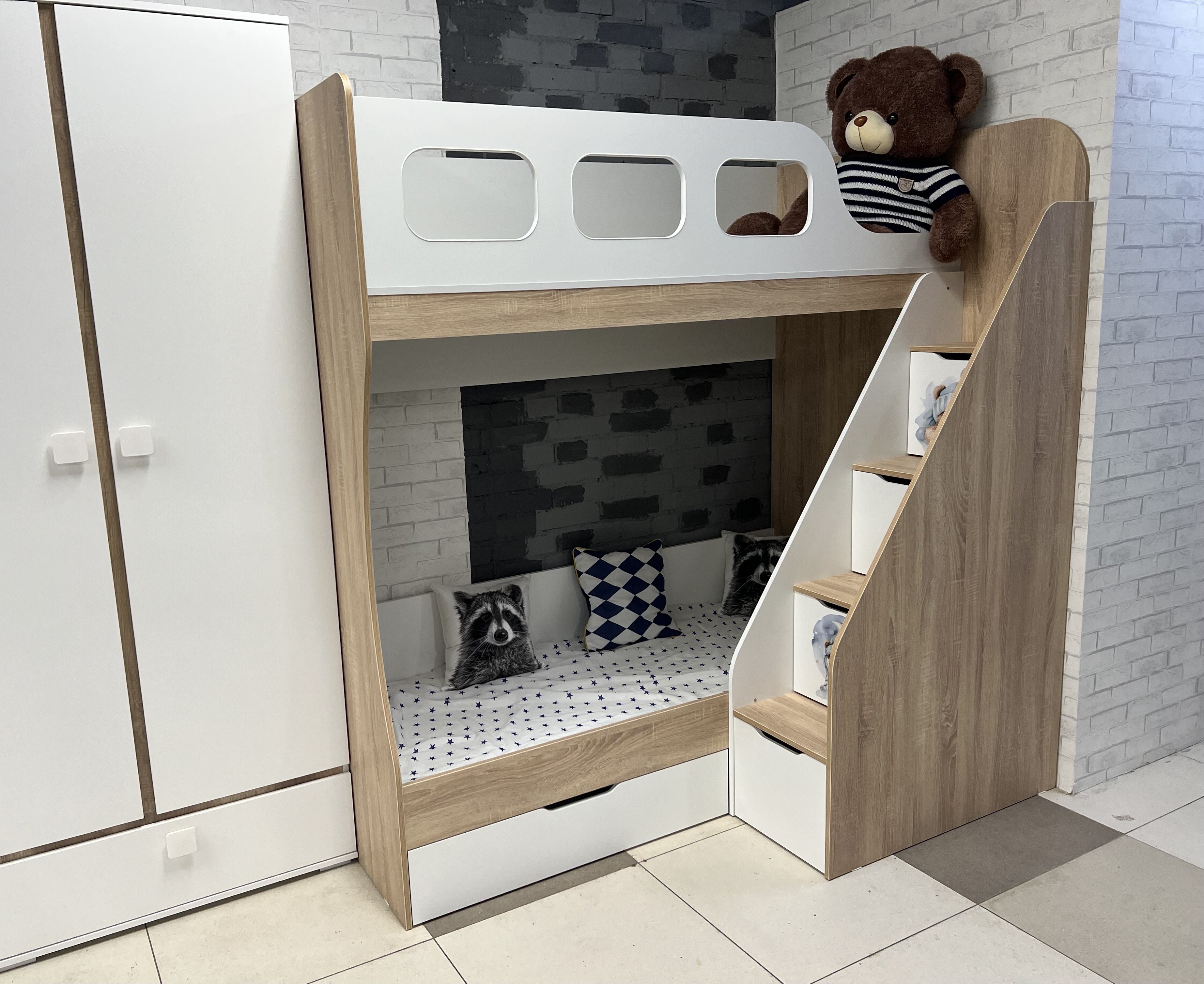 Габариты кровати: ширина 1936 х высота 1950 х глубина с учетом лестницы 1236 мм