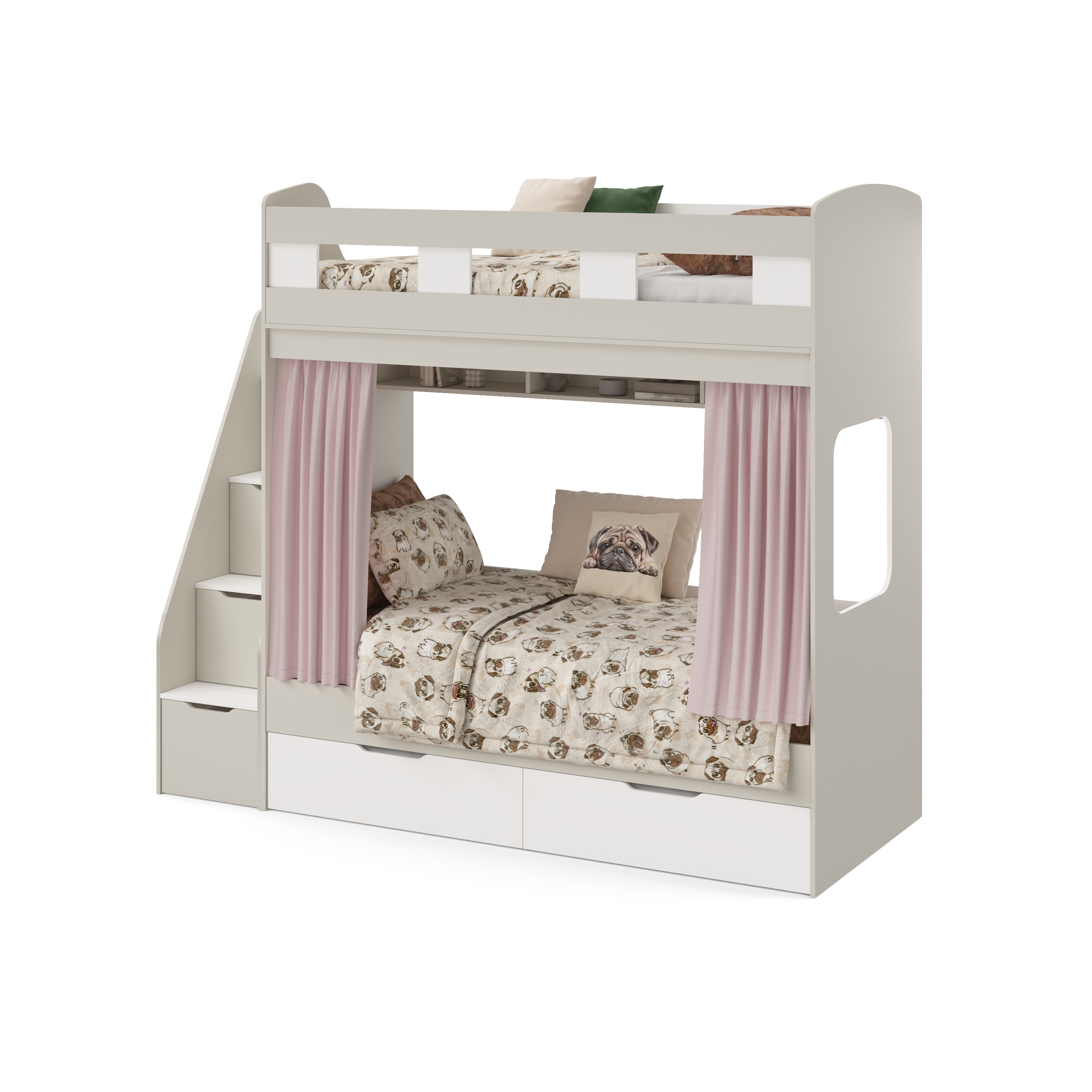 Прочная конструкция кровати выдерживает нагрузку до 150 кг на каждое спальное место.