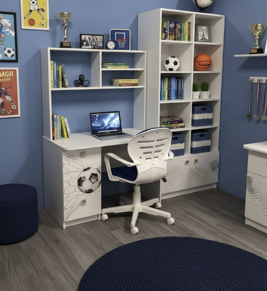 Мебель выполнена из сертифицированного, качественного, экологически чистого ЛДСП Е0,5 в белом цвете с принтом.