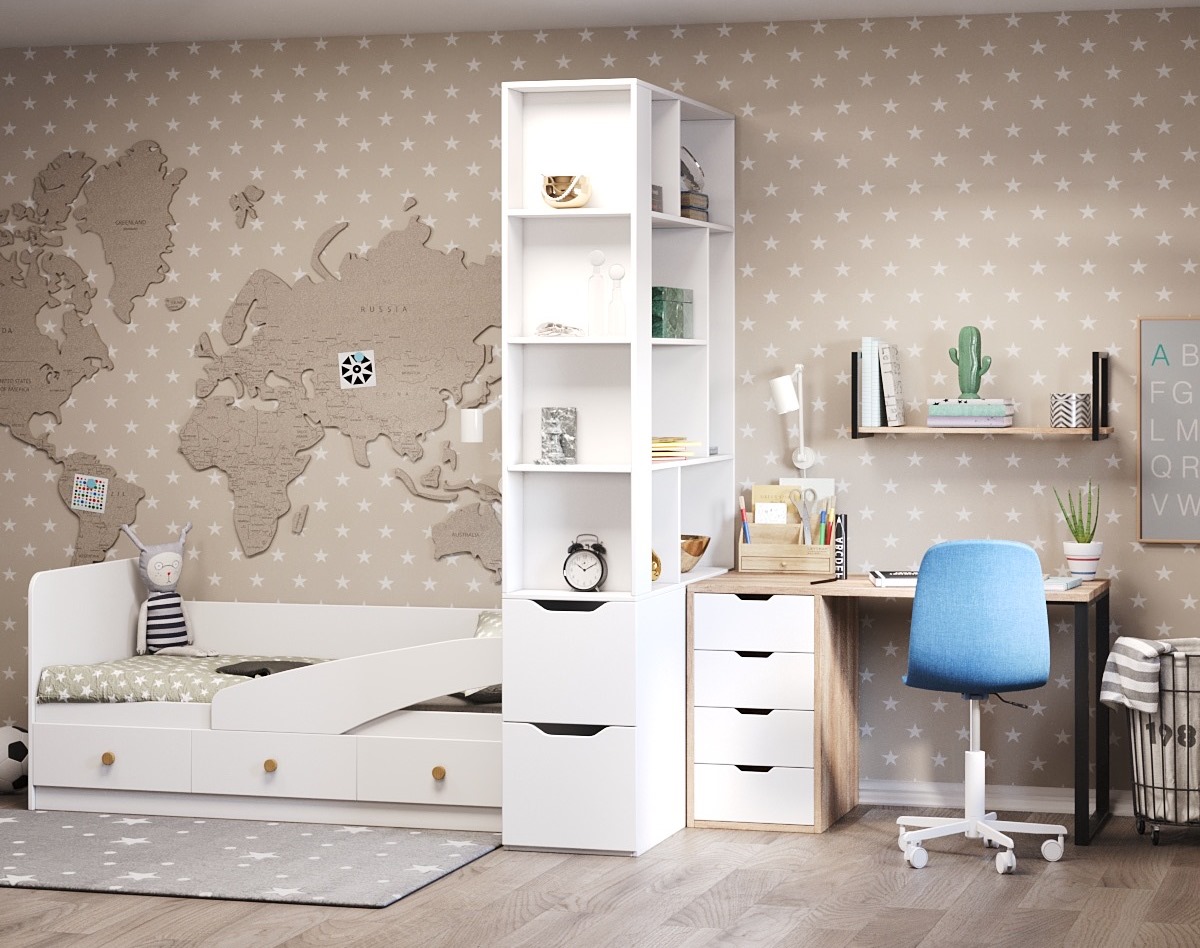 —Комплект мебели для детской комнаты (кровать Умка-5 + перегородка + стол + полка)