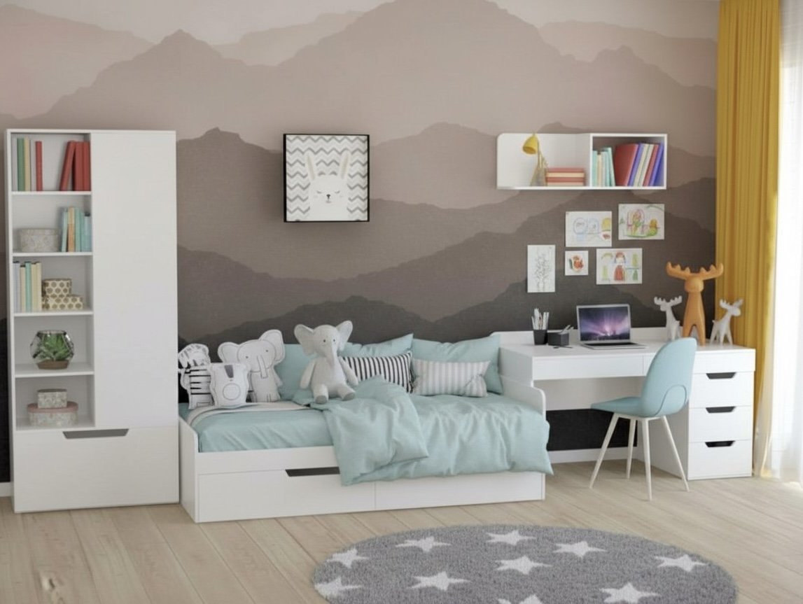 Мебель выполнена из сертифицированного, качественного, экологически чистого ЛДСП класса Е0,5 в белом цвете.