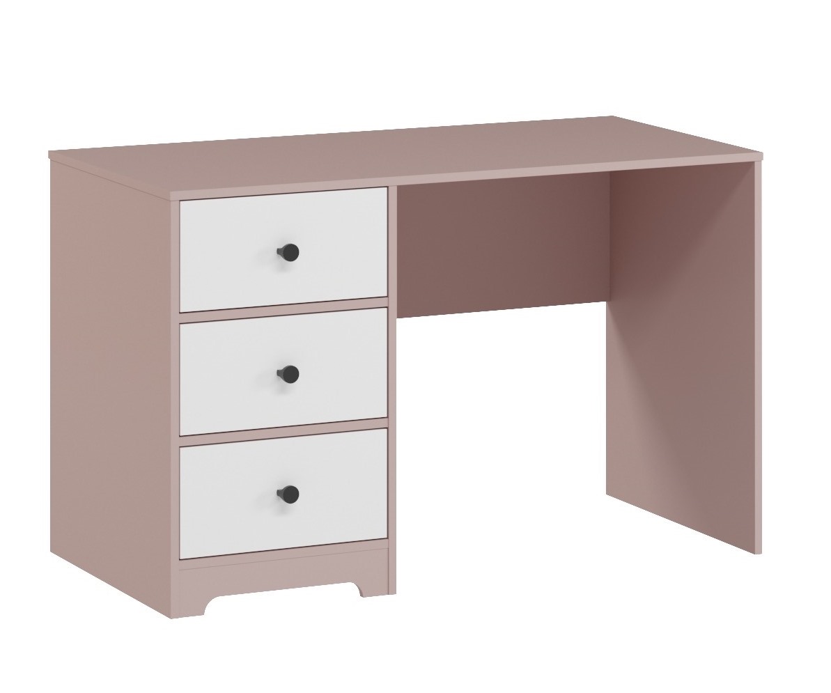 В стол встроены три выдвижных ящика на направляющих скрытого монтажа с доводчиками.