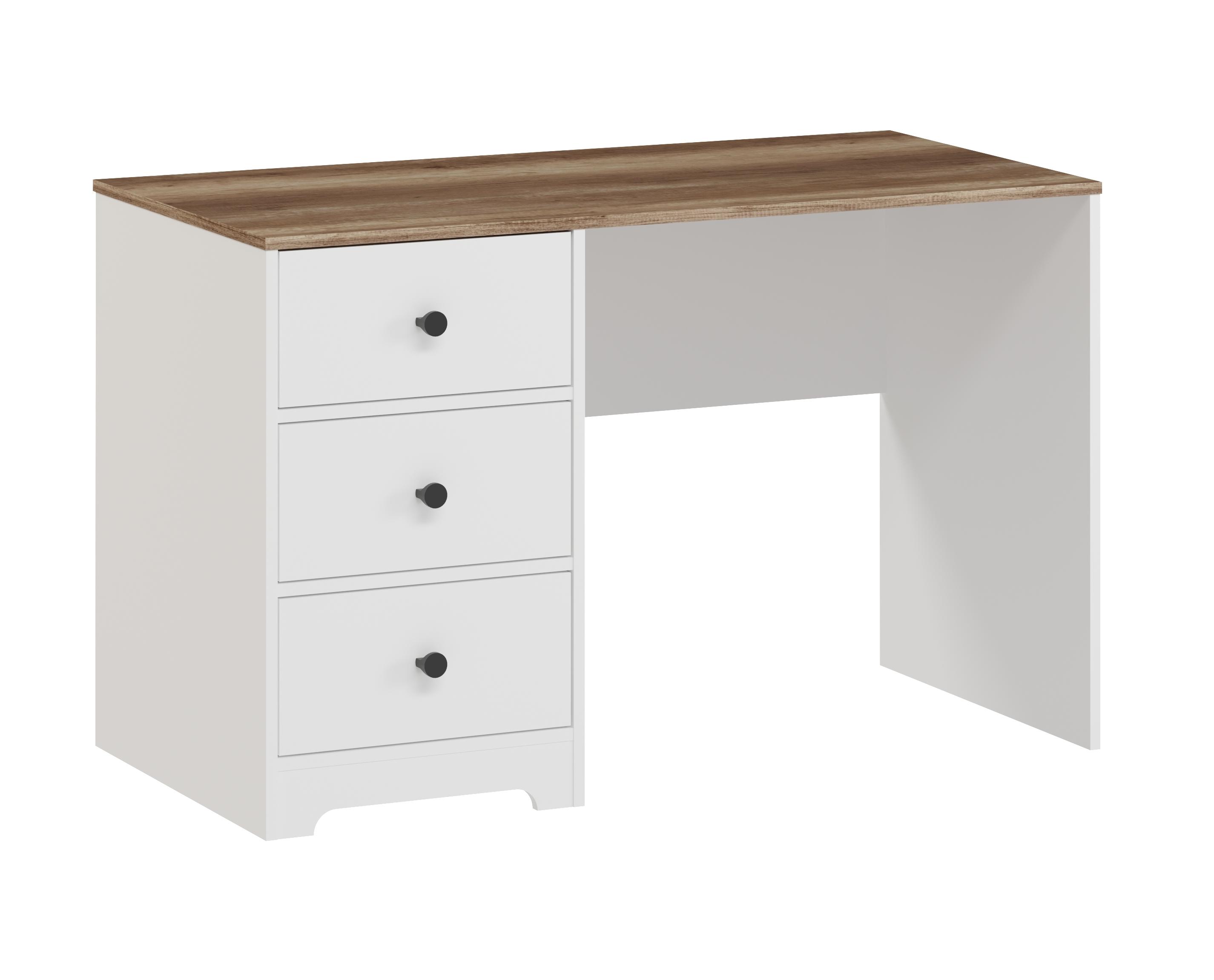 В стол встроены три выдвижных ящика на направляющих скрытого монтажа с ДОВОДЧИКАМИ.