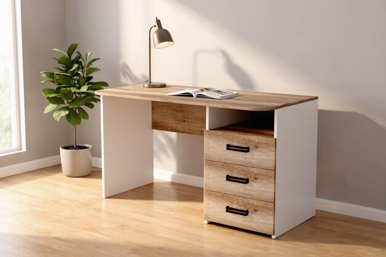 В стол встроены три выдвижных ящика на шариковых направляющих.