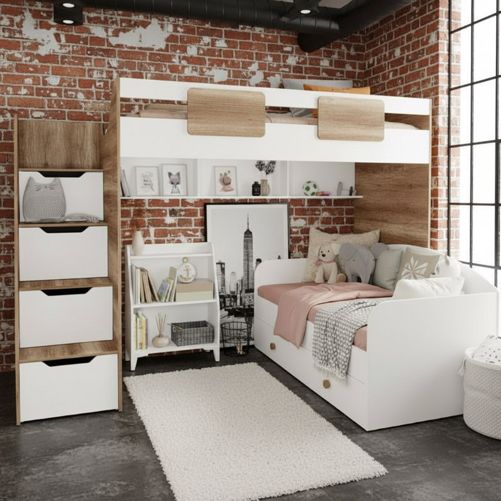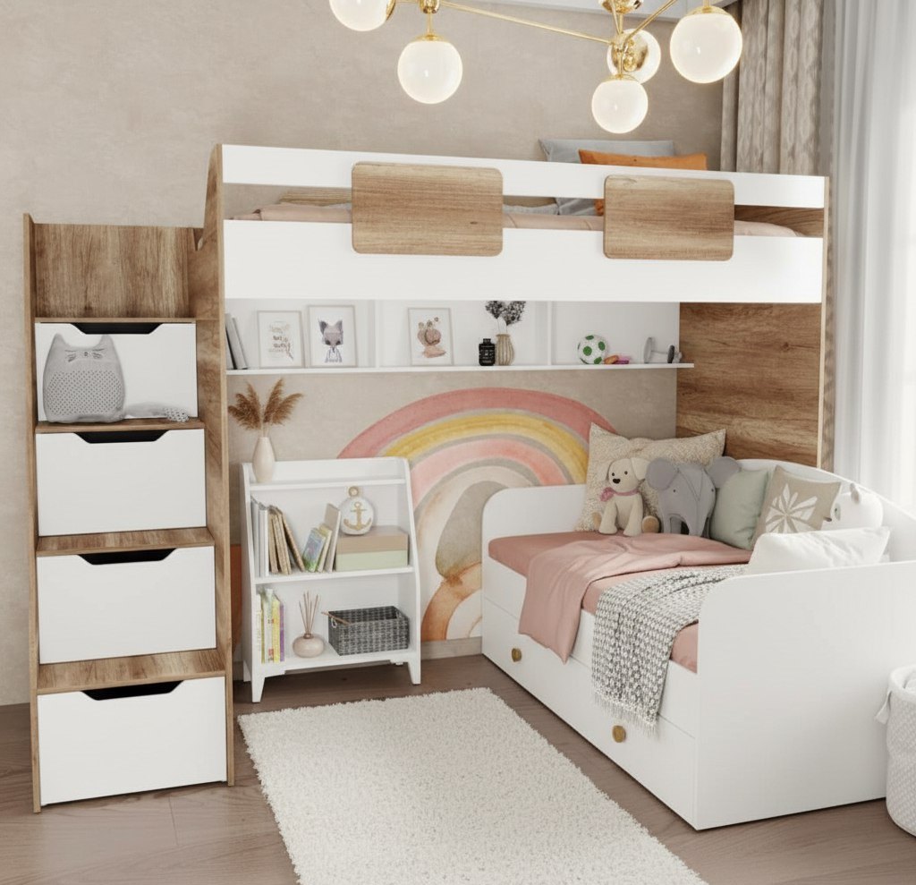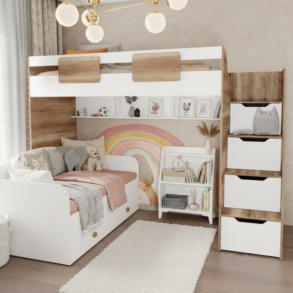 кровать-чердак Лайт Лофт + кровать Умка New + стеллаж Уют-5