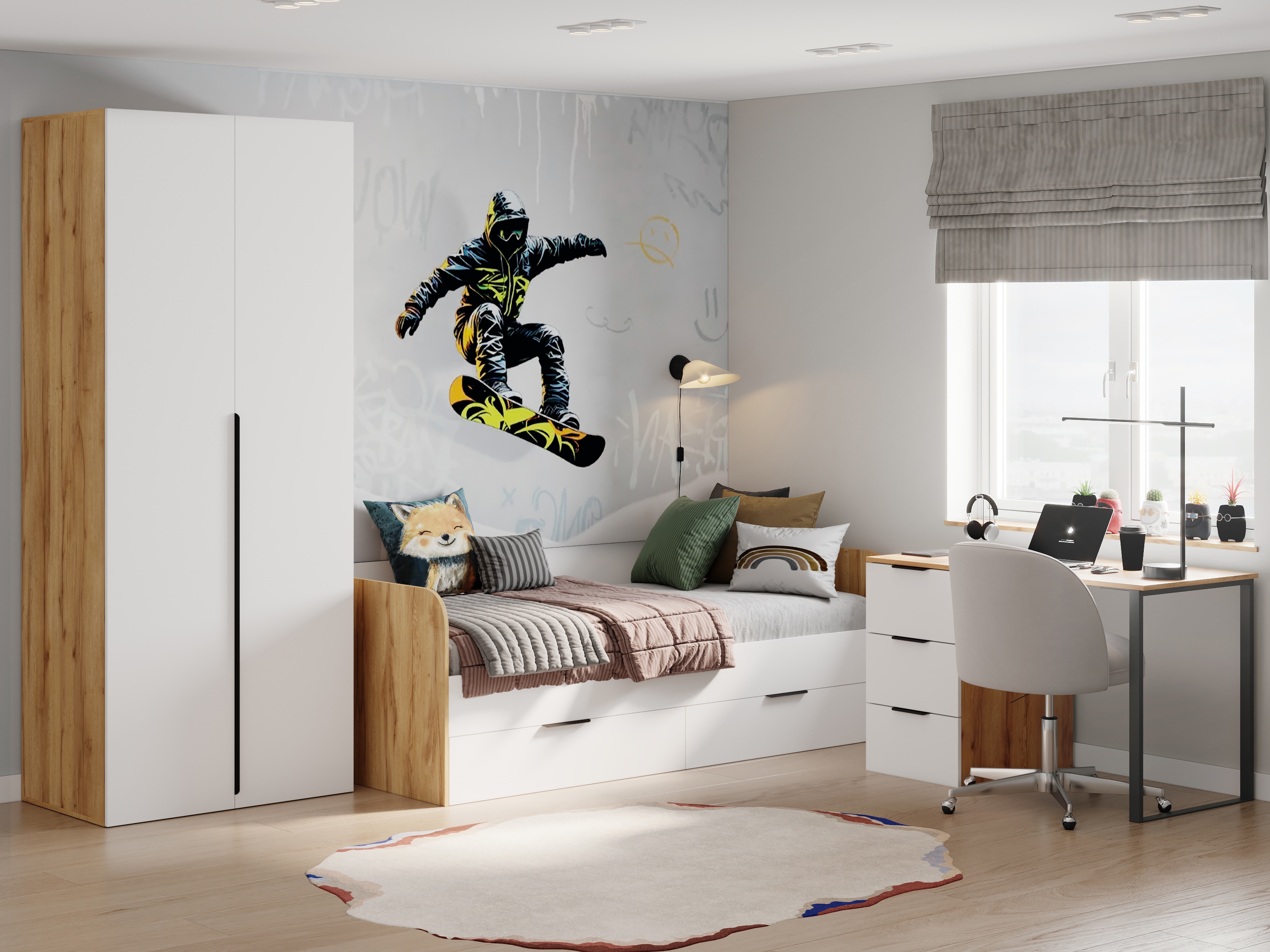 ЛДСП Е0,5. Толщина 16 мм. ДОСТУПНА В РАСЦВЕТКАХ: корпус дуб золотистый + фасады графит, корпус дуб золотистый + фасады белые, корпус белый + фасады графит, полностью белый или велюр |