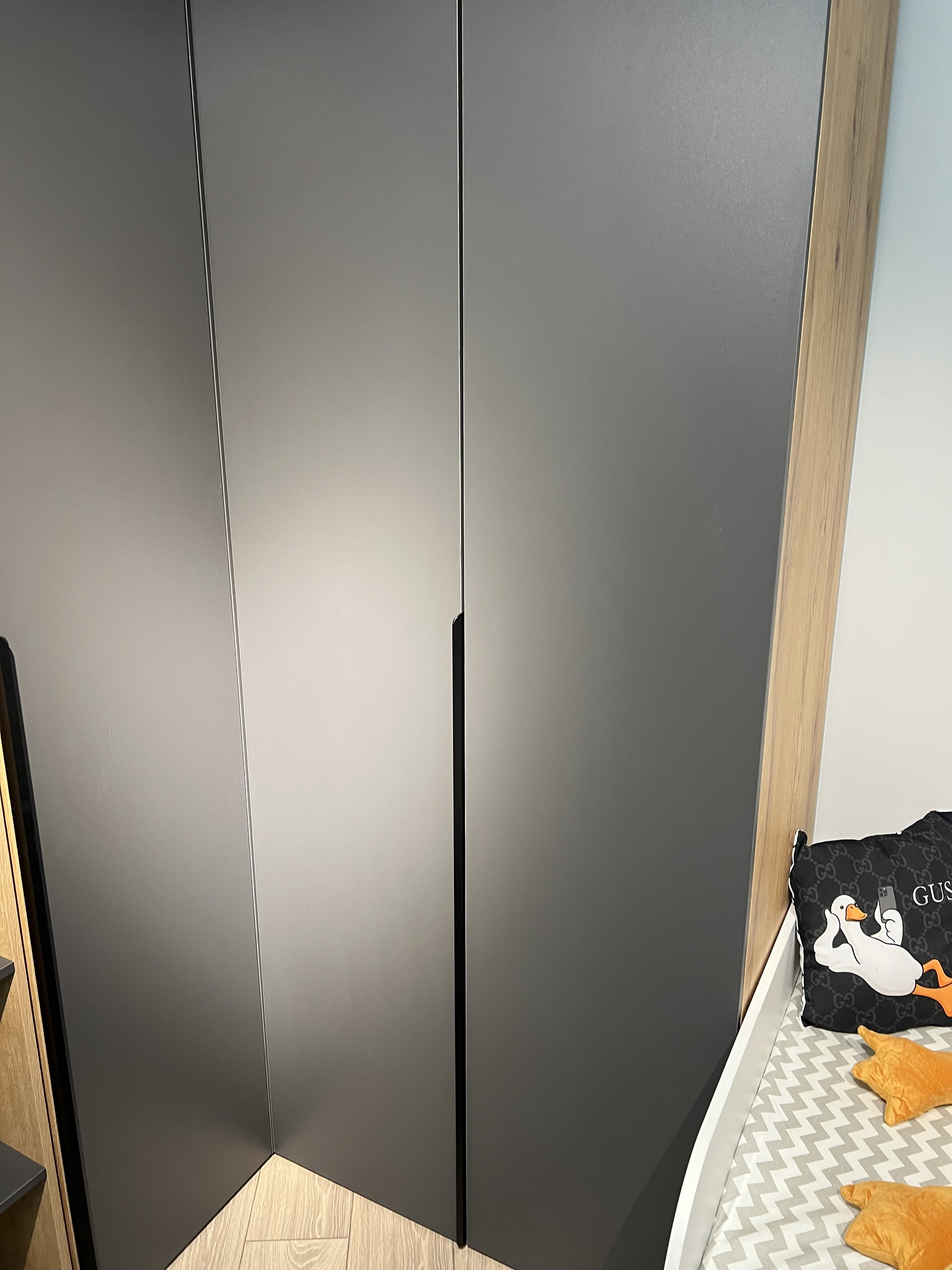 На дверях шкафа установлены доводчики.