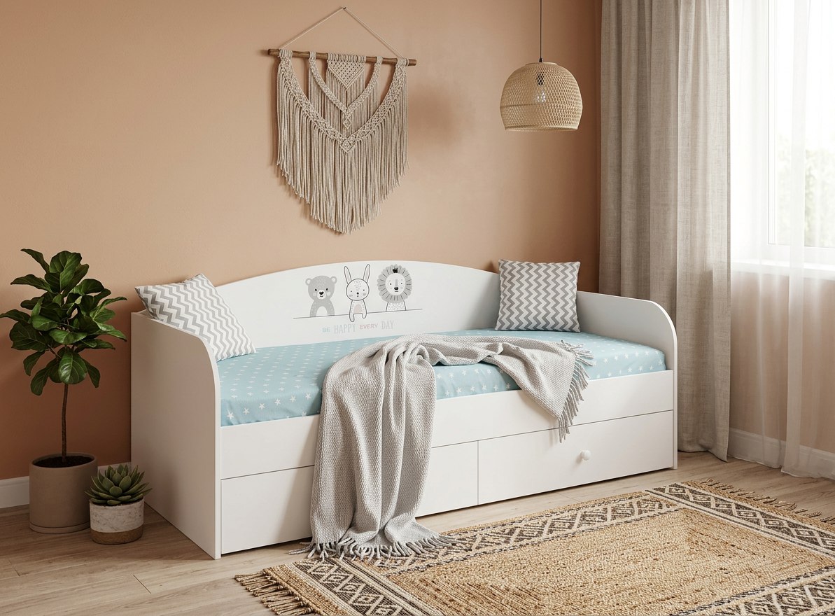 В стоимость входят: стеллаж-перегородка + кровать коллекции Хэппи