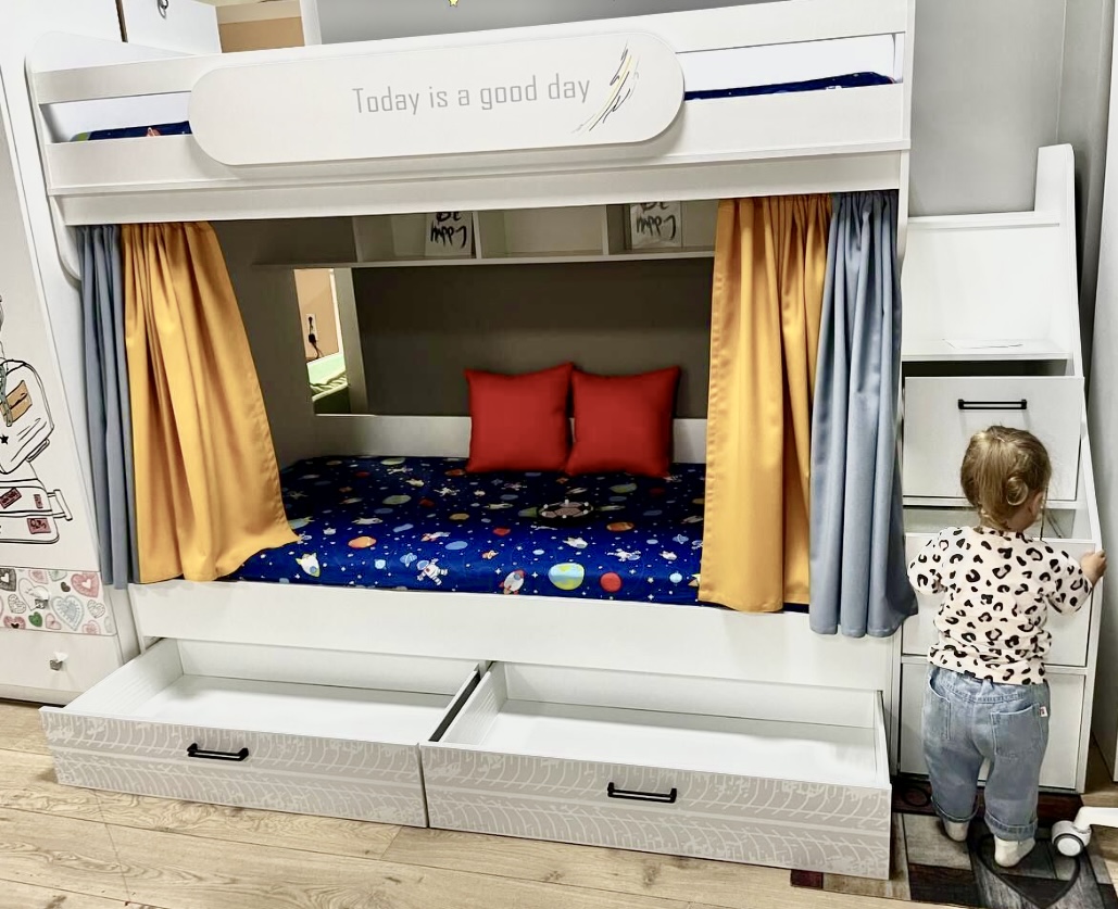 Высота кровати комфортна для сна - на втором этаже ребенку будет не душно спать.