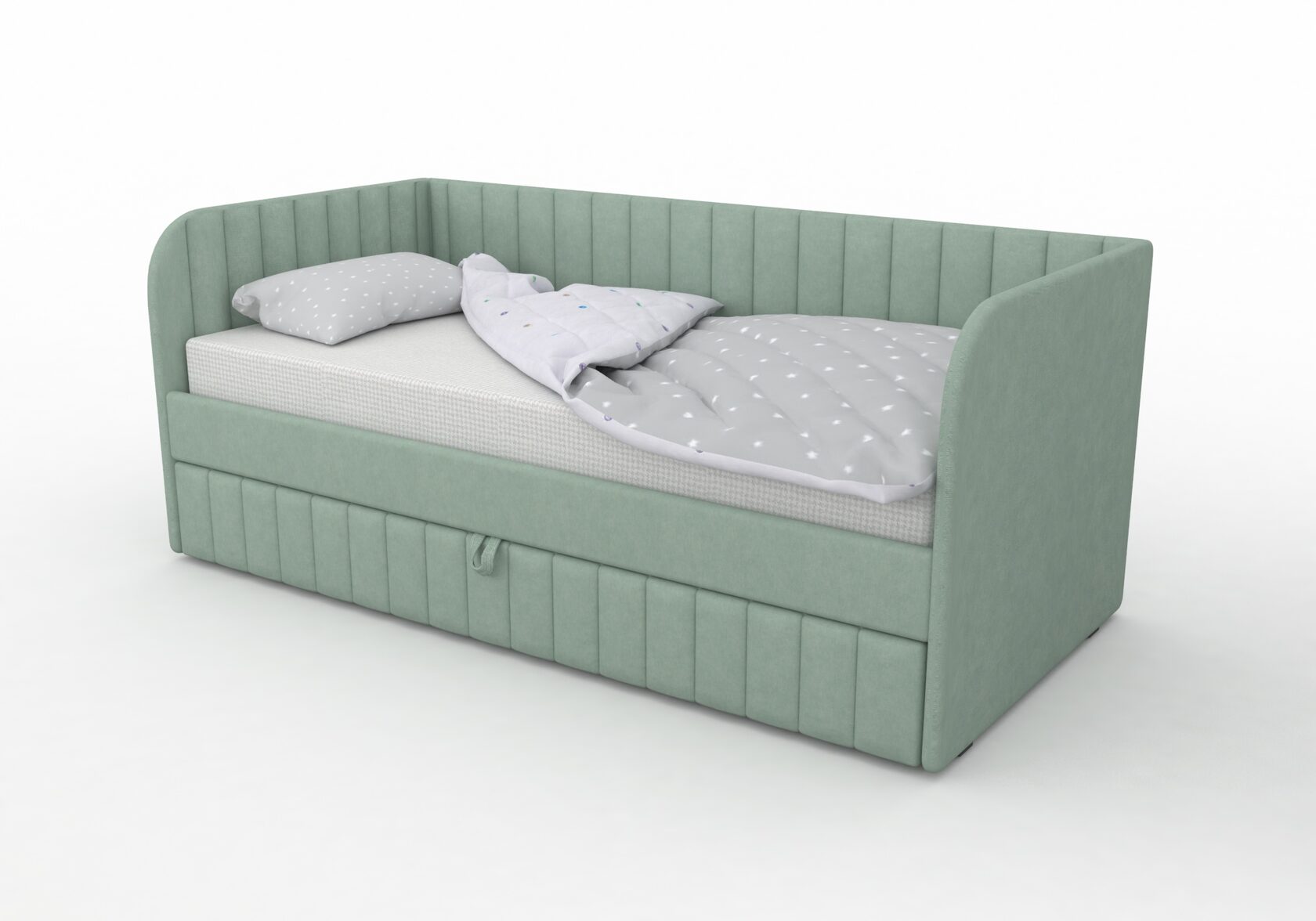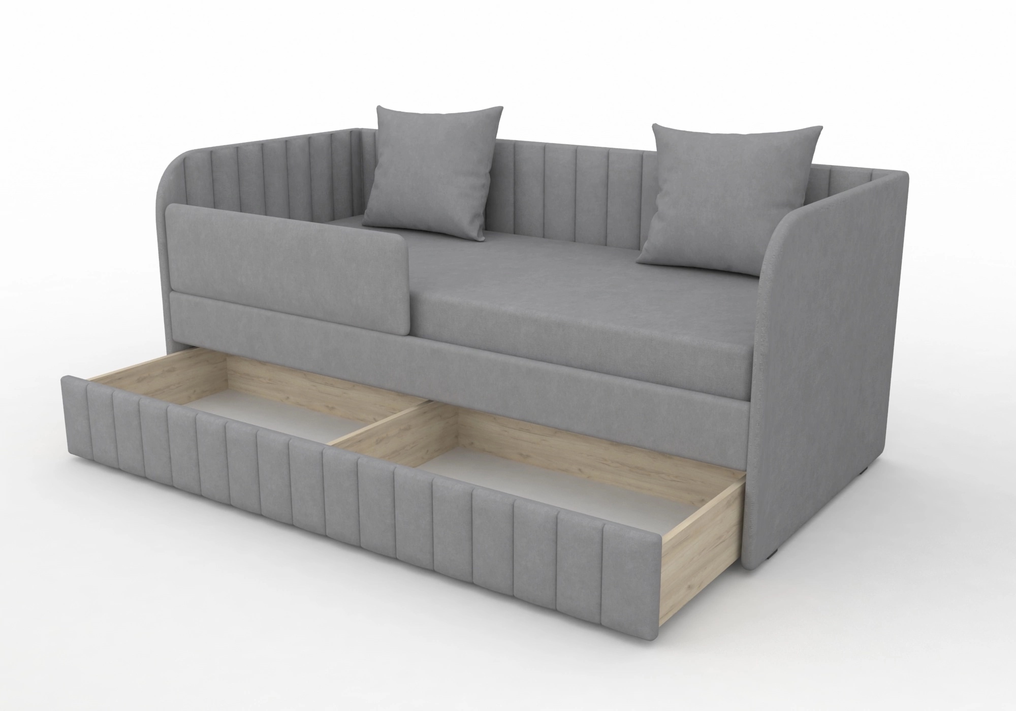 Кровать Гретта с модной вертикальной отстрочкой и закругленными боковыми бортиками.