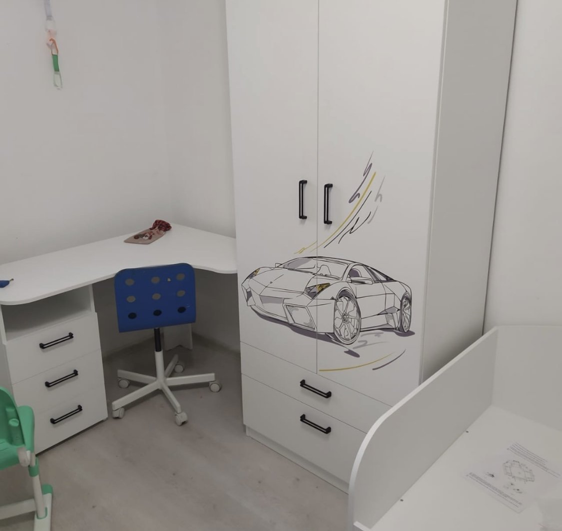 Мебель выполнена из сертифицированного, качественного, экологически чистого ЛДСП класса Е0,5 в белом цвете и оформлена дизайнерским принтом.