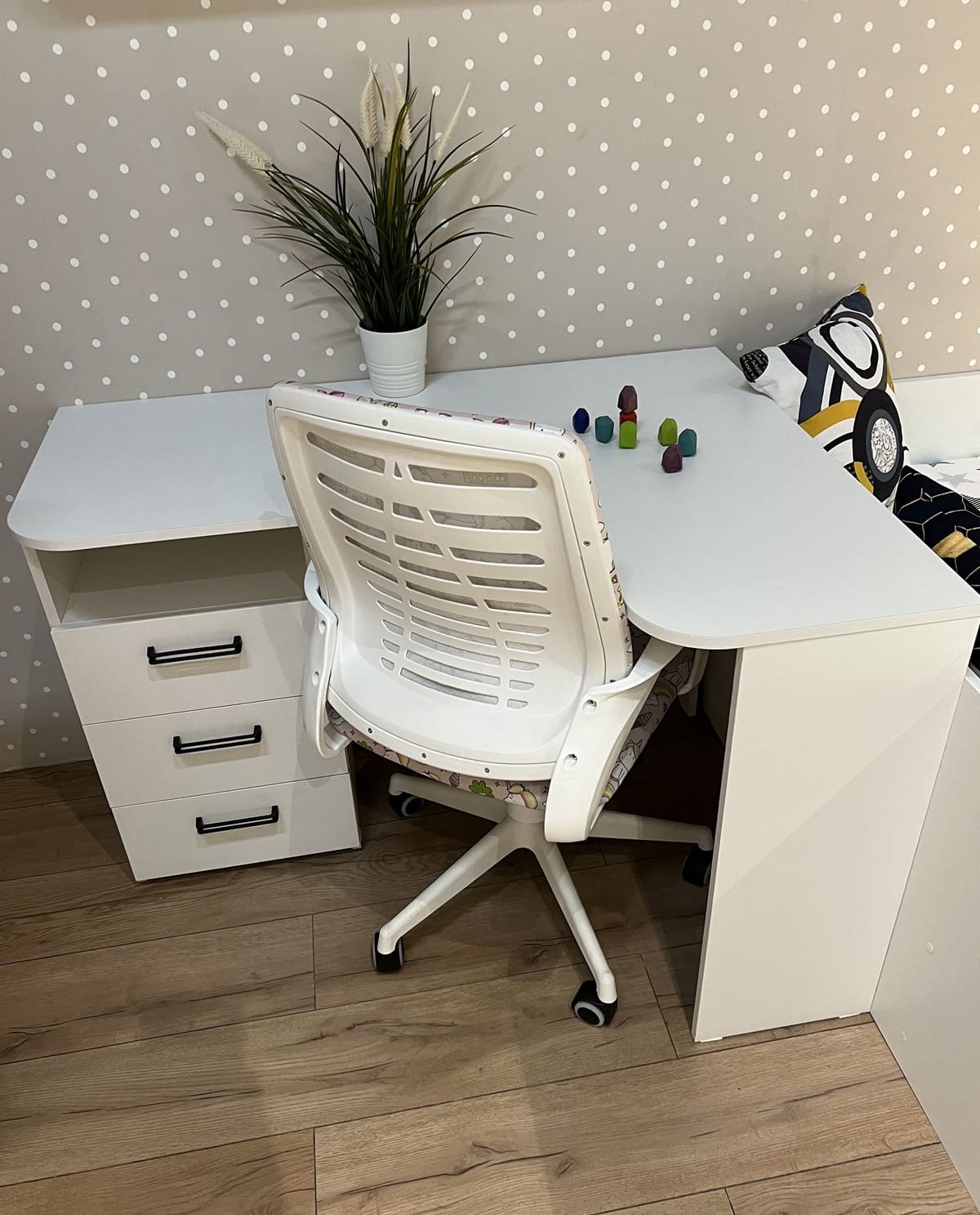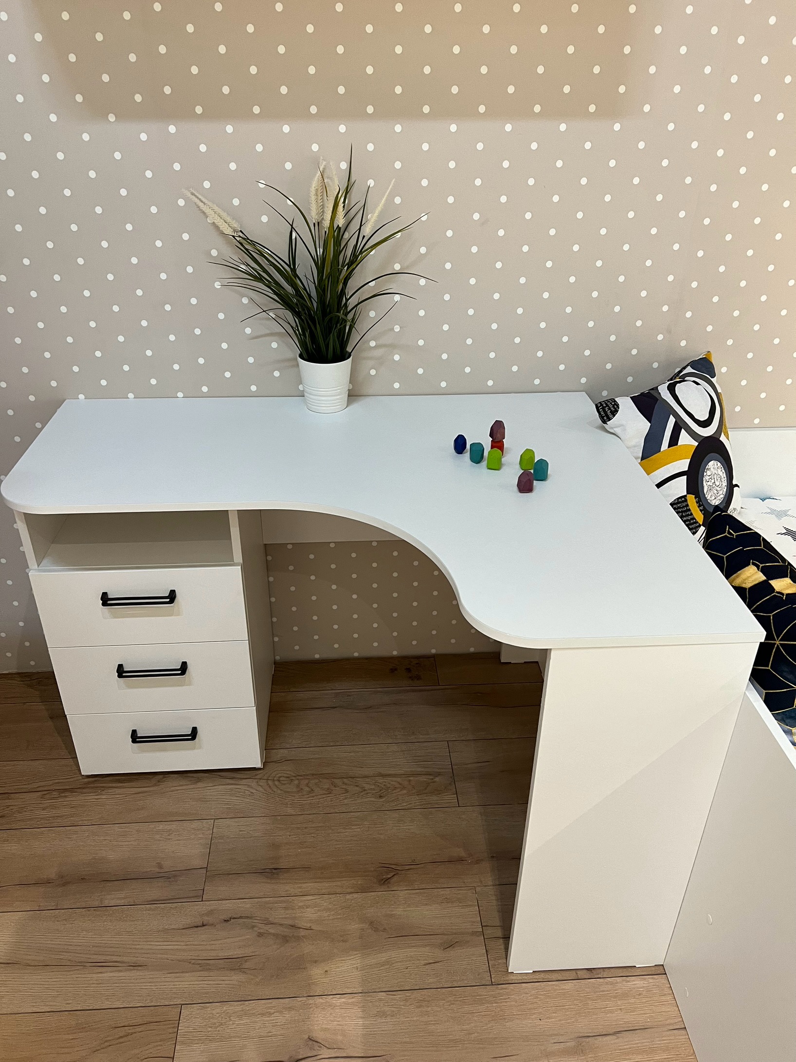 * В стол встроены три выдвижных ящика на шариковых направляющих.