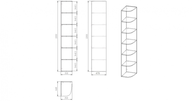 Габариты: ширина 350 х высота 2203 х глубина 479 мм