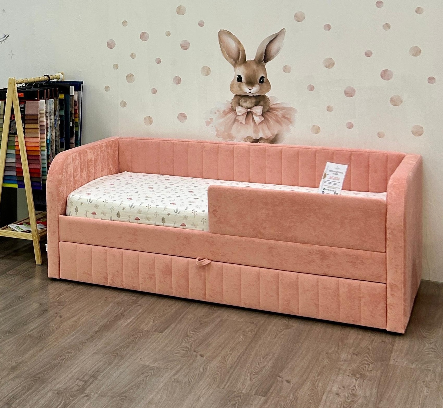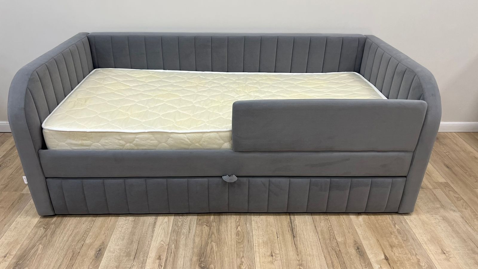 Кровать полностью безопасна для ребенка, так как имеет прочную конструкцию и мягкие подлокотники, которые защитят ребенка от травм.