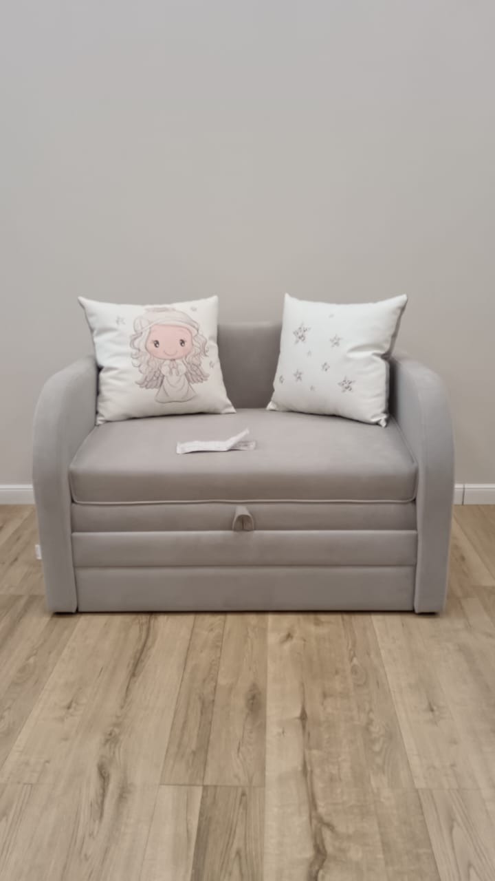 Диван полностью безопасен для ребенка, так как имеет прочную конструкцию и мягкие овальные подлокотники, которые защитят ребенка от травм.