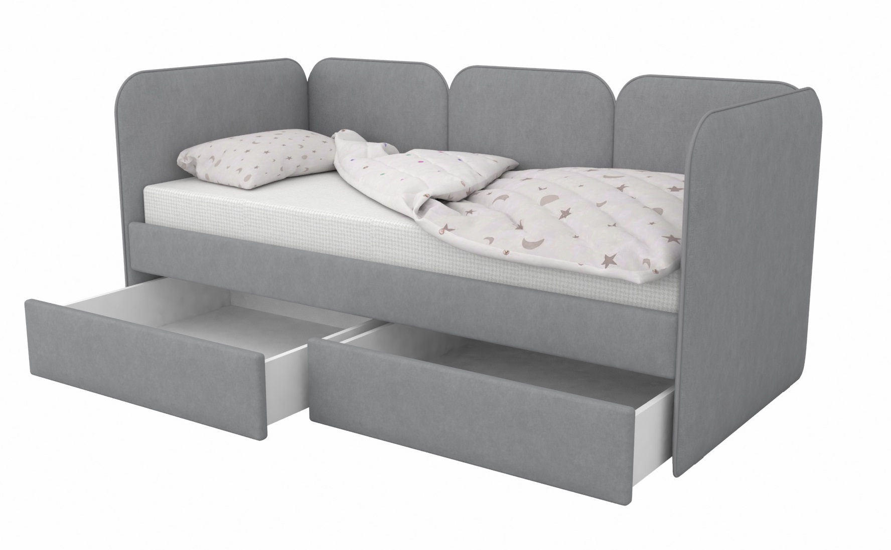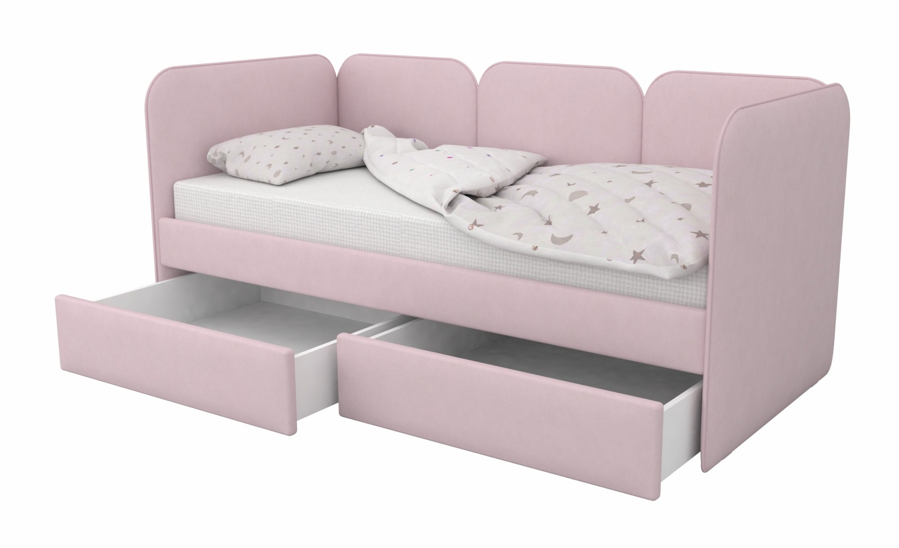 Мягкая кровать Соната с выразительными скругленными спинками - универсальная база для интерьеров детских комнат.