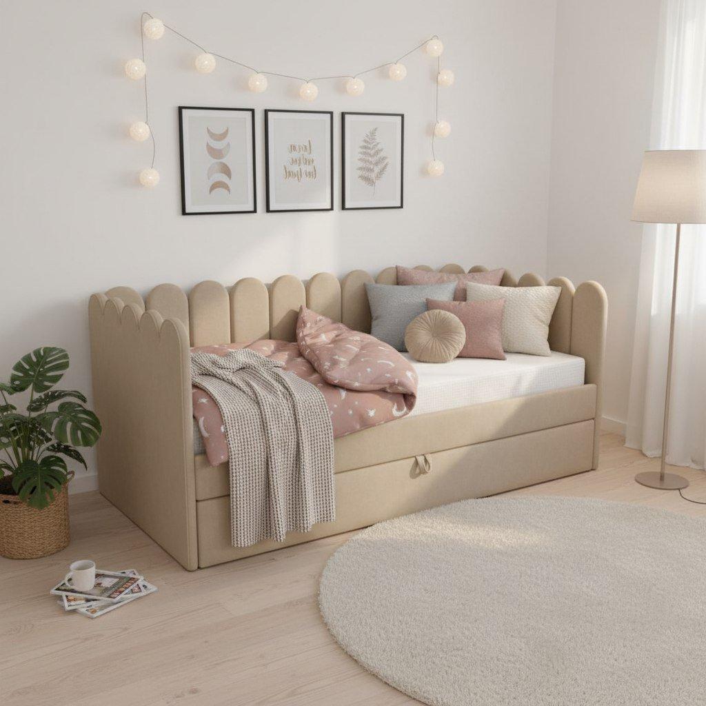 * Широкий выбор расцветок ткани для обивки кровати и размеров спальных мест.