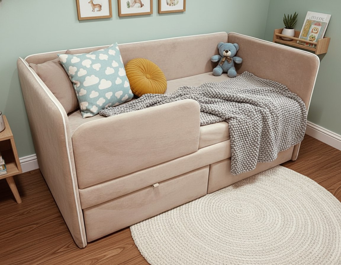 За счет высоких бортиков по периметру на диване будет безопасно спать даже малышам.