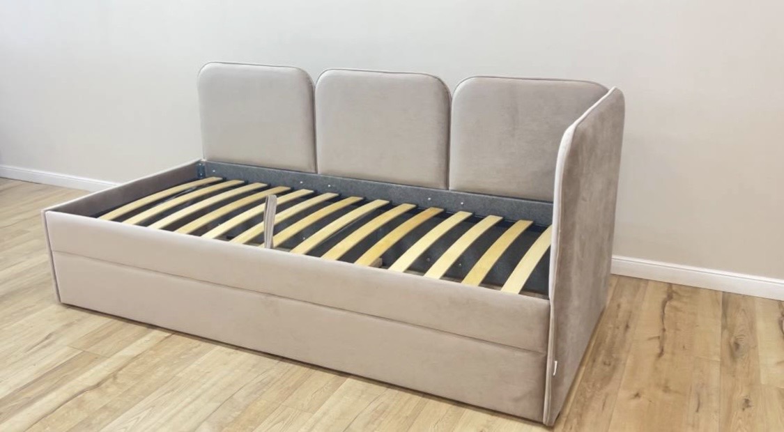 Широкий выбор расцветок ткани для обивки кровати и размеров спальных мест.
