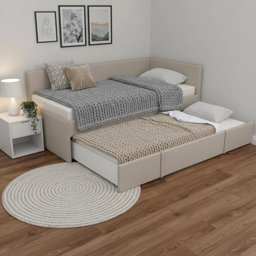 Данная модель оснащена вместительным ящиком, что позволяет использовать его как дополнительное спальное место.