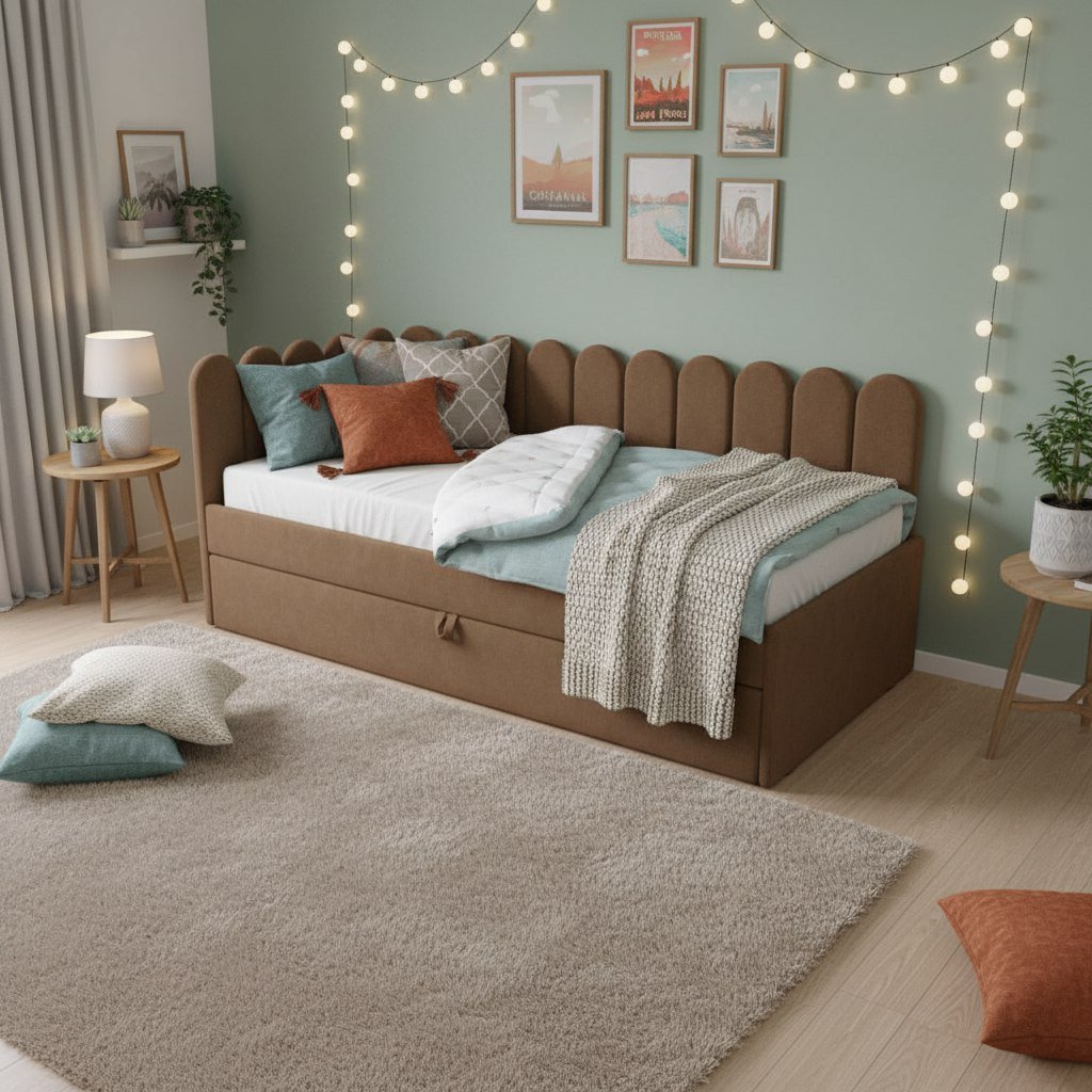 Кровать полностью безопасна для ребенка, так как имеет прочную конструкцию и мягкие подлокотники, которые защитят ребенка от травм.