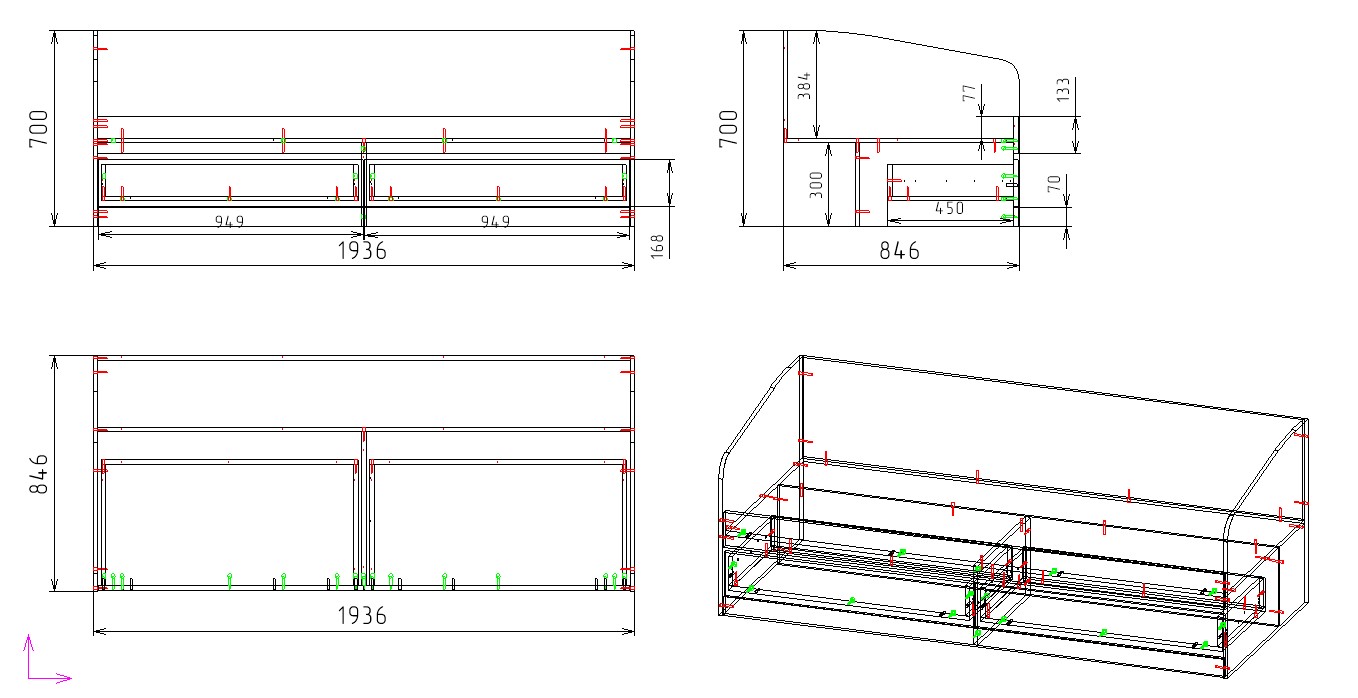 Габариты кровати: ширина 1936, глубина 846, высота 700 мм