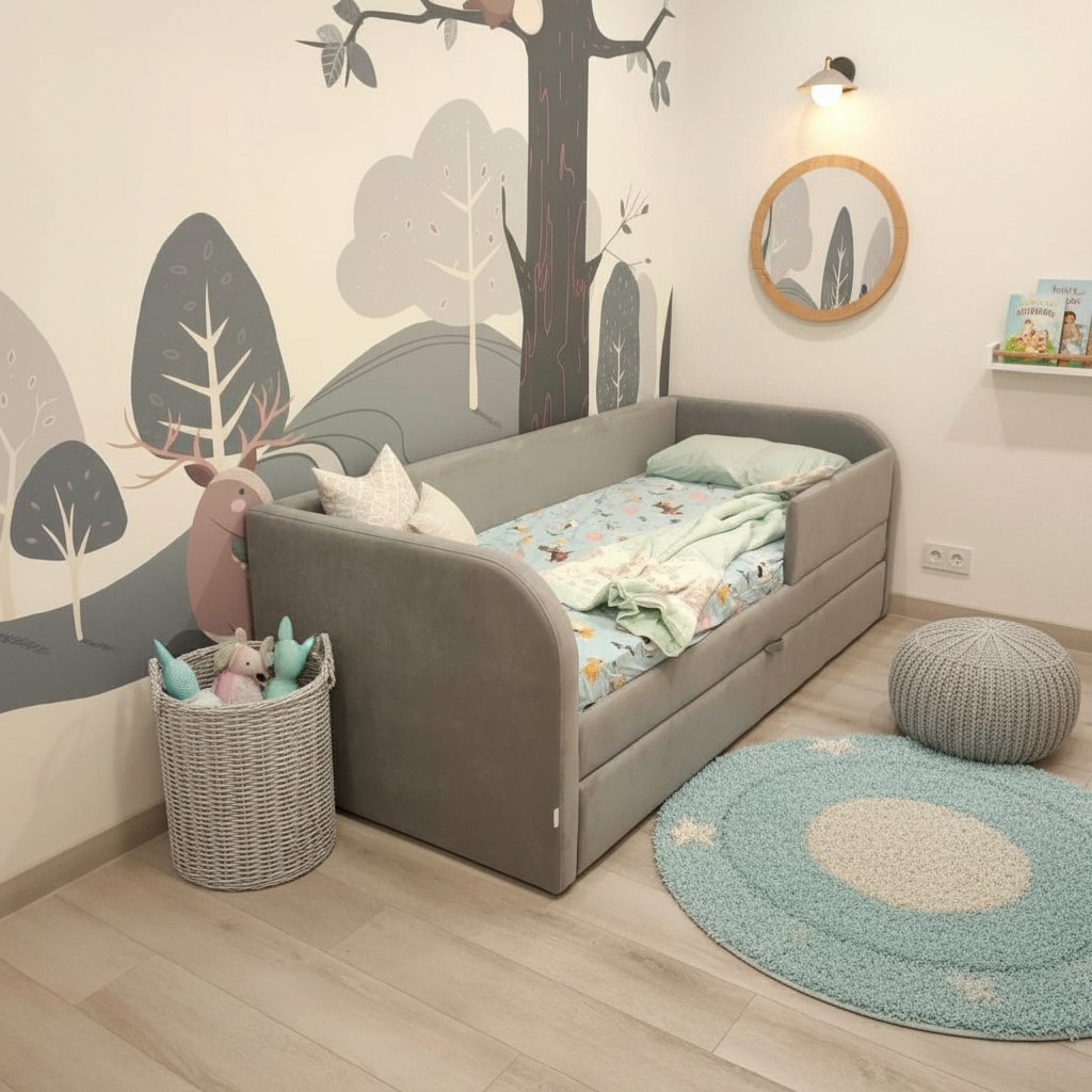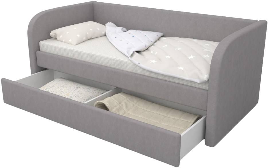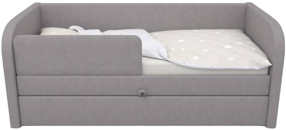 Кровать полностью безопасна для ребенка, так как имеет прочную конструкцию и мягкие подлокотники, которые защитят ребенка от травм.