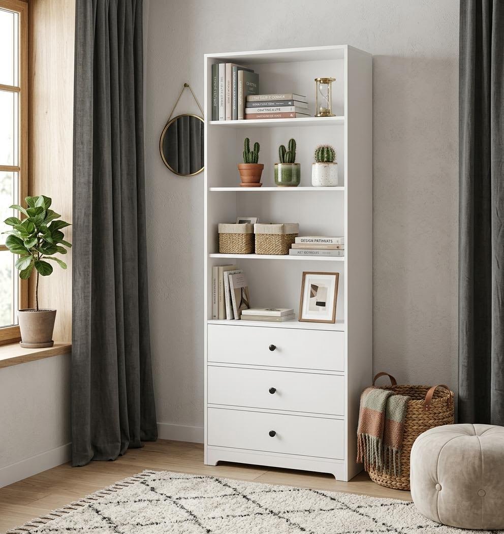 • Дизайн, подходящий для детской: модели представлены в разных цветах и стилях, что помогает выбрать стеллаж для любого интерьера.