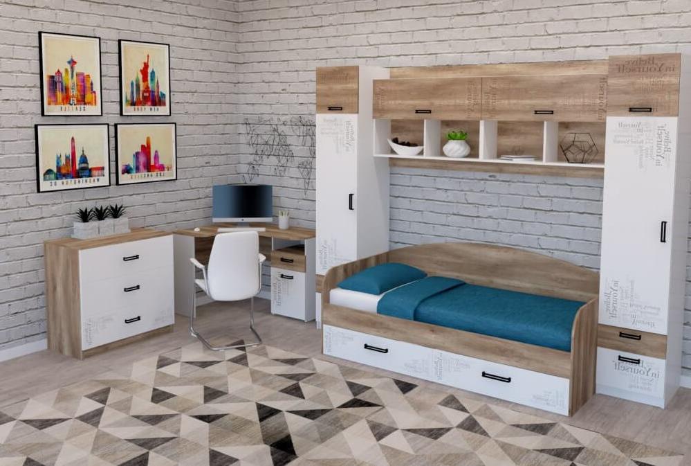 кровать + угловой стол + полка (2 шт) + пенал (2 шт) + комод
