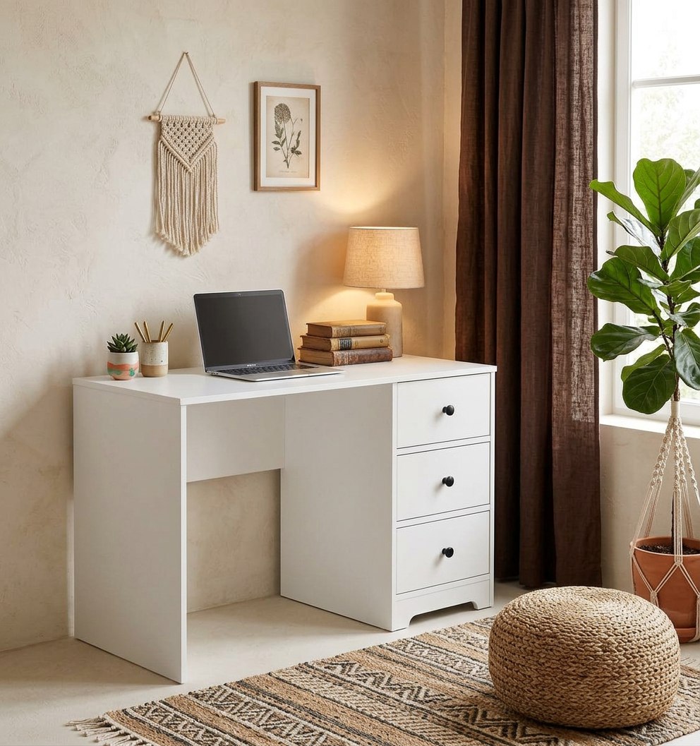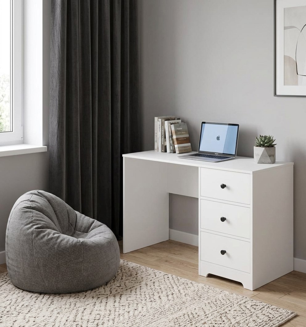 * В стол встроены три выдвижных ящика на направляющих скрытого монтажа с ДОВОДЧИКАМИ.