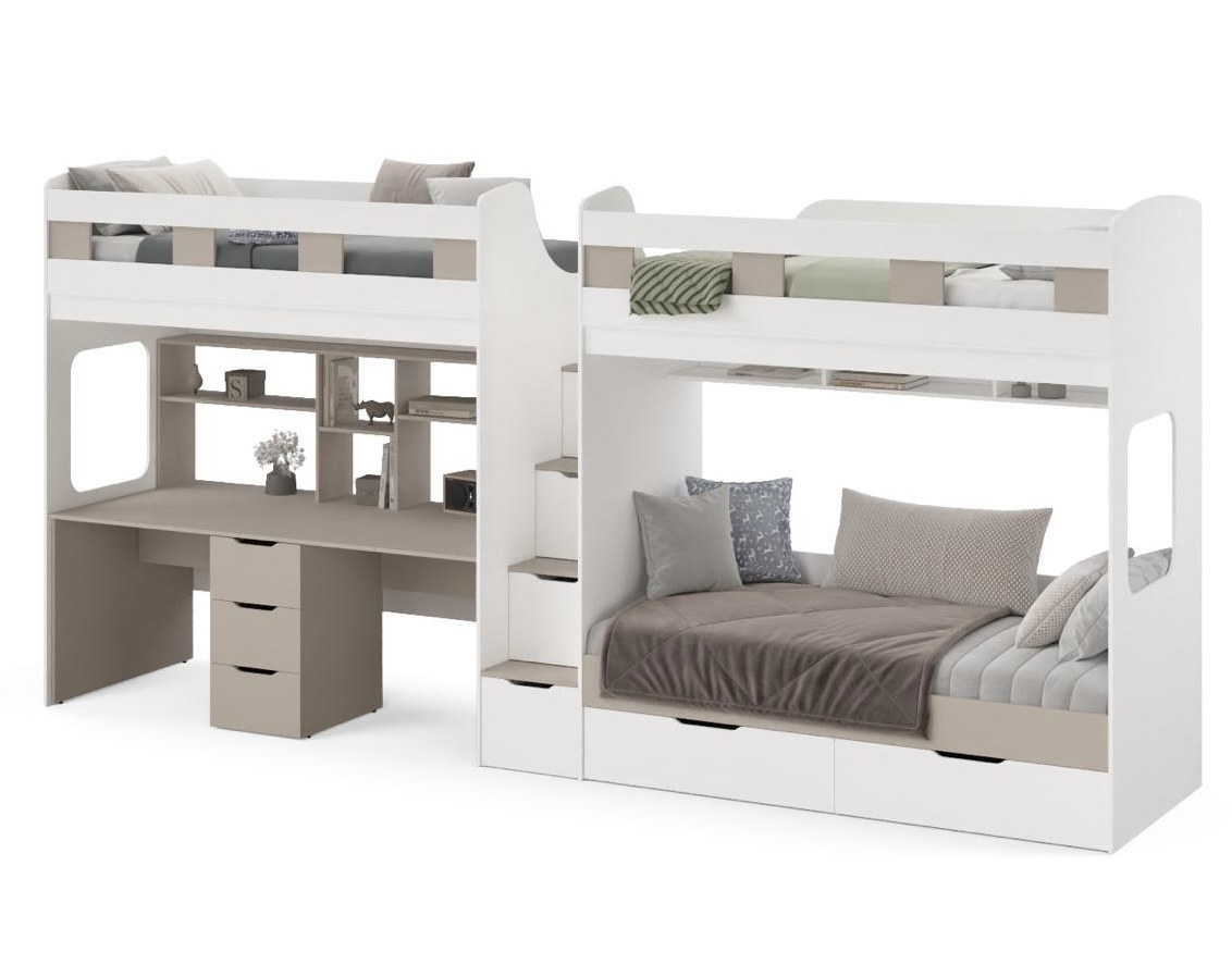 Уникальная 3-х ярусная кровать "Квартет" со столом для двоих детей - функциональность и стиль в каждой детали!