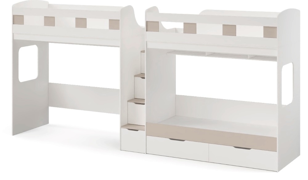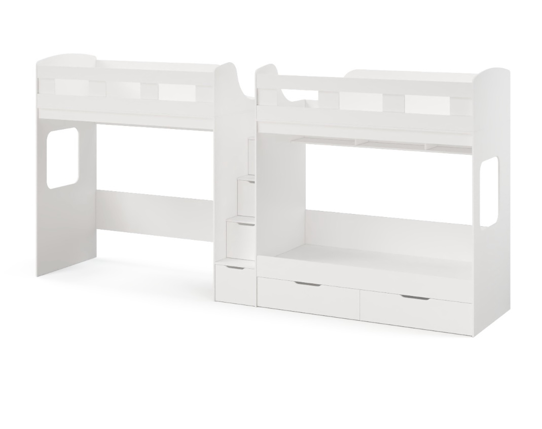 Высокая нагрузка на спальные места.. Удобная лестница-комод. Высокие, безопасные бортики |