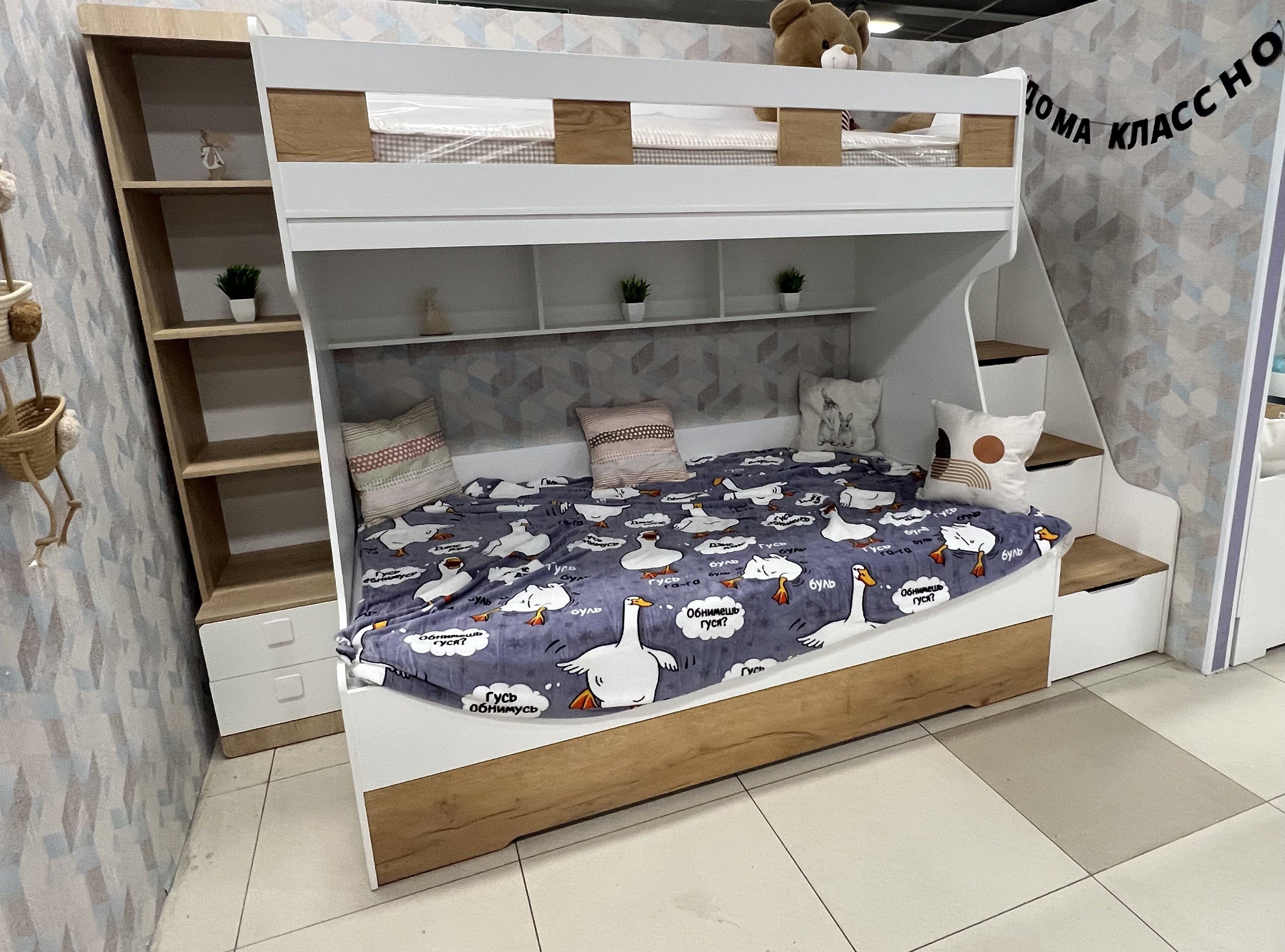 - Максимальная функциональность - два яруса обеспечивают удобство и экономию пространства, а дополнительное спальное место легко выдвигается, когда это необходимо.