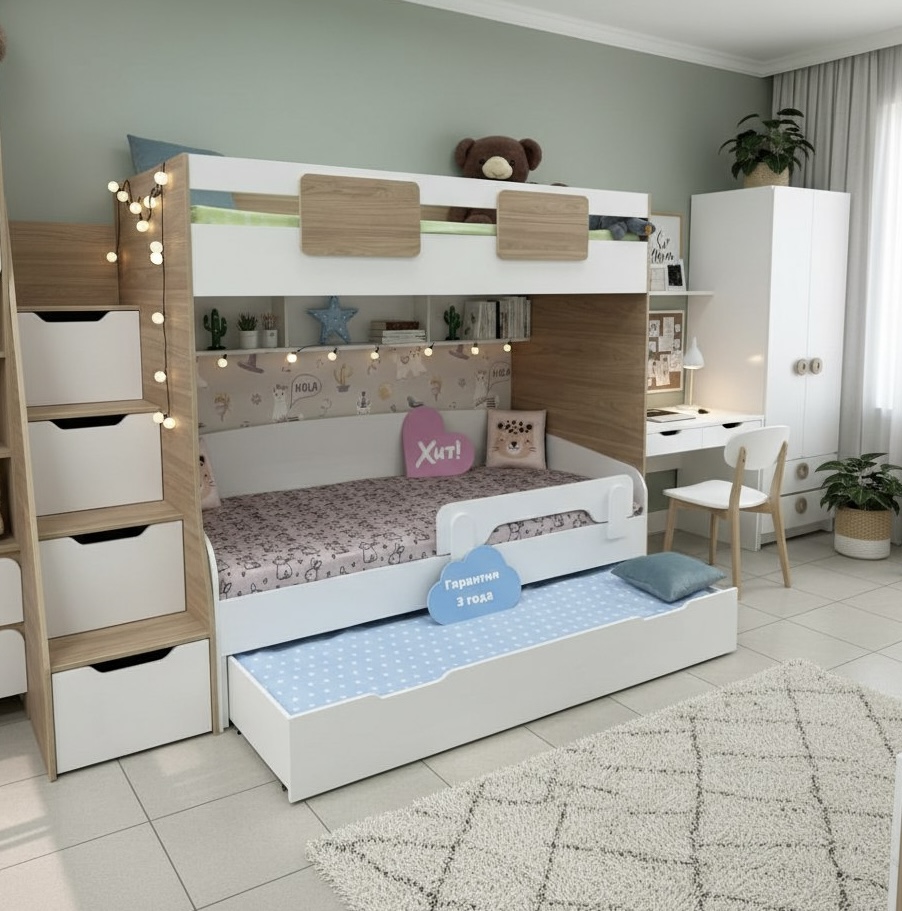 Кровать-чердак коллекции Мозаика + кровать выкатная Двушка