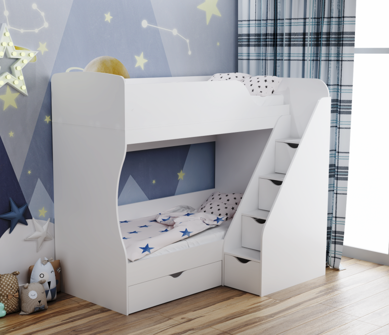 * Широкие бортики кроватей, удобные ступеньки, отсутствие острых углов - дополнительная безопасность для ребенка.